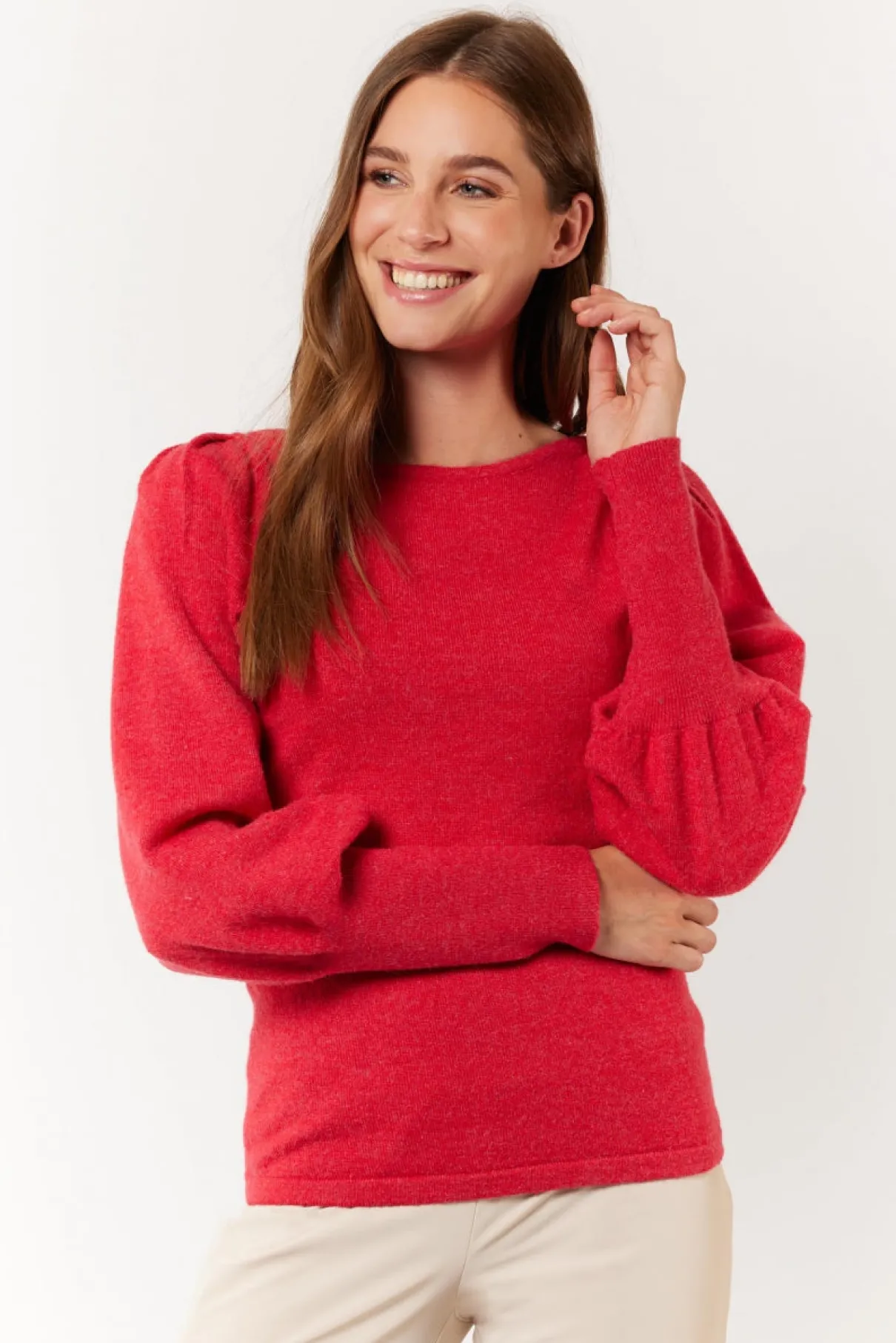 Het zachte kleurenpalet van dit najaar brengt je terug down-to-earth. Dit palet wordt verwerkt in de subtiele melanges van de warme truiencollectie. Zo ook in de fijne Allanis trui. Deze trui heeft een aansluitend model met ballonmouwen en een lieve, geplooide schouders. Deze trui is verkrijgbaar in diverse kleuren.
