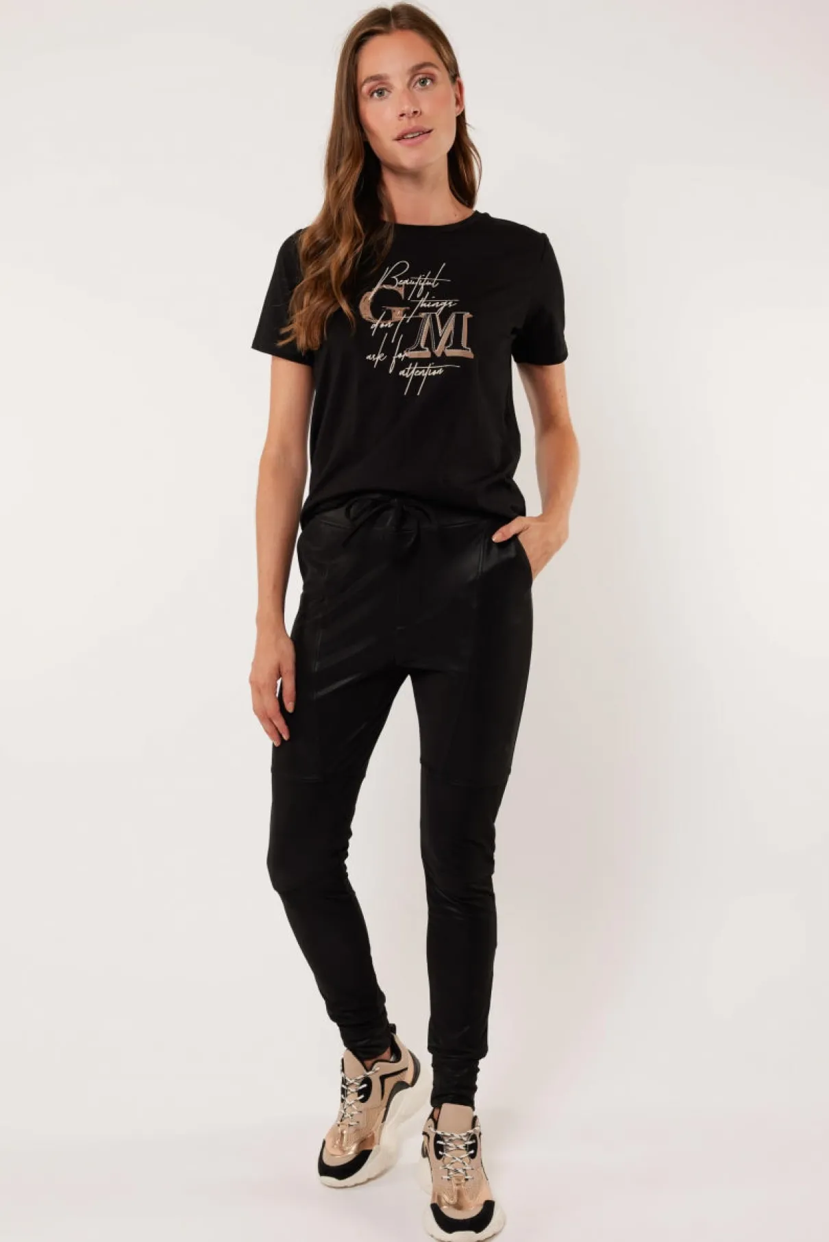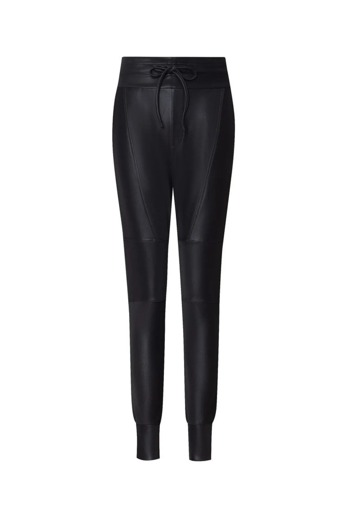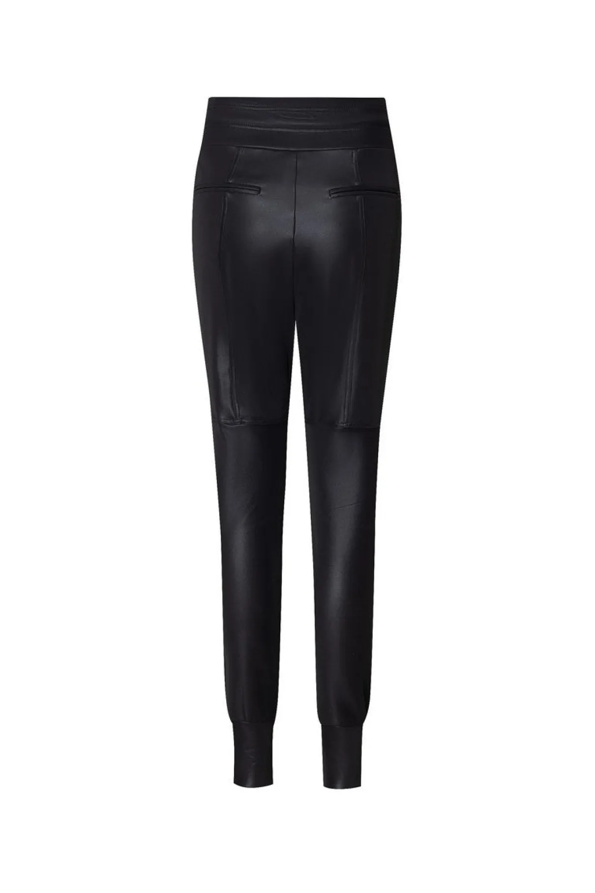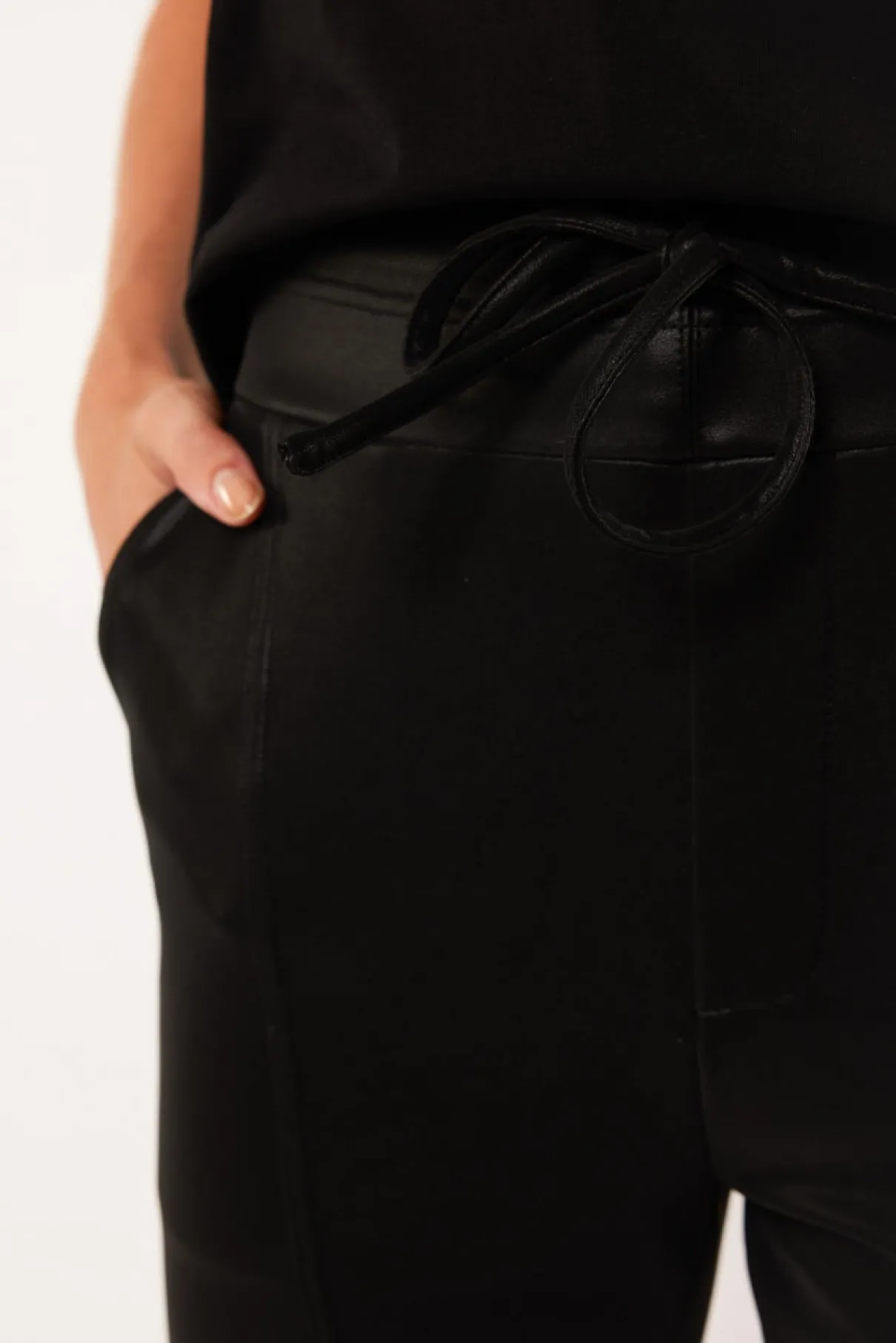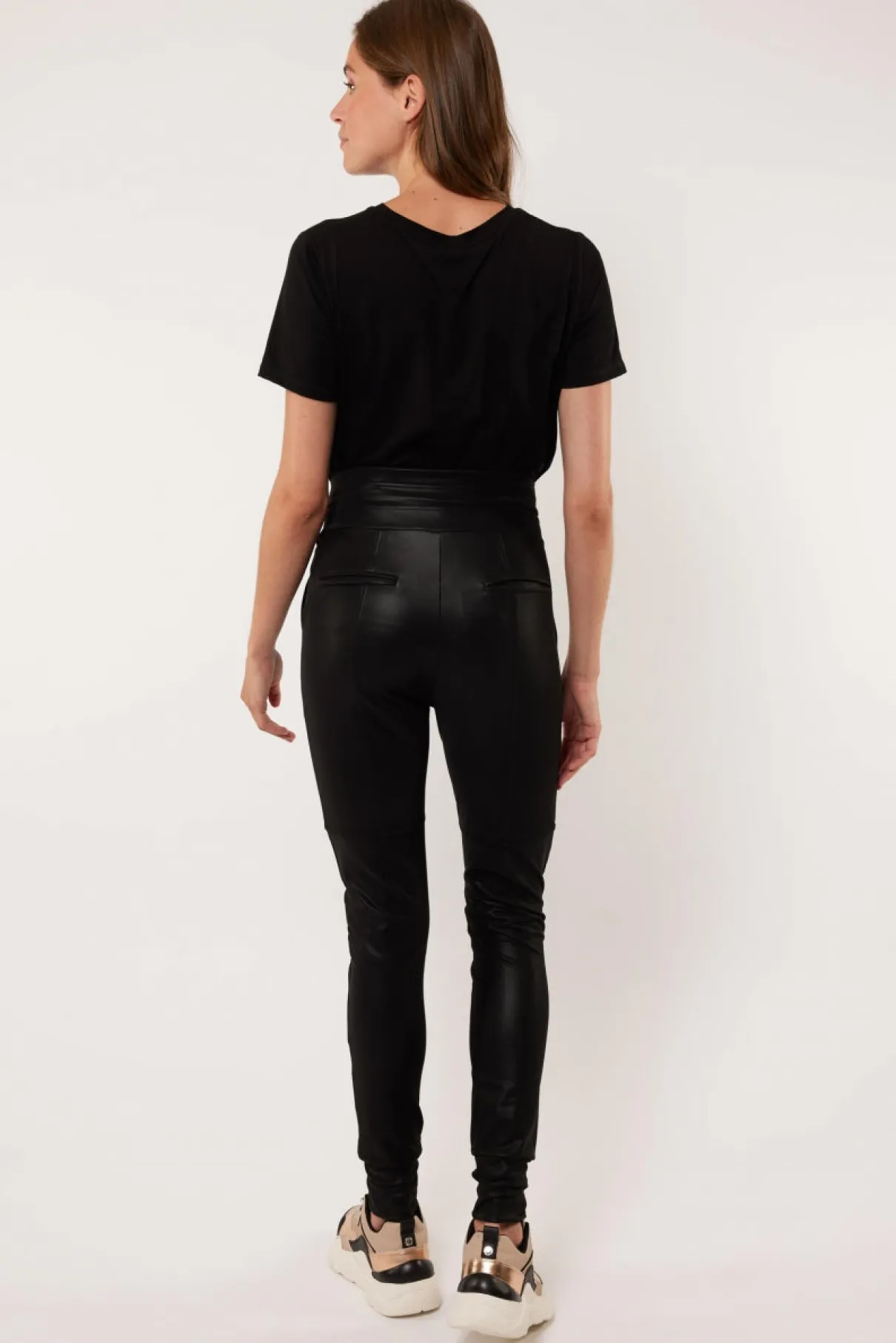 Geef je look een stoere touch met de Amalia broek, gemaakt van faux-leather. Deze broek heeft een comfortabel, aansluitend model met een striklsuiting in de tailleband en steekzakken.