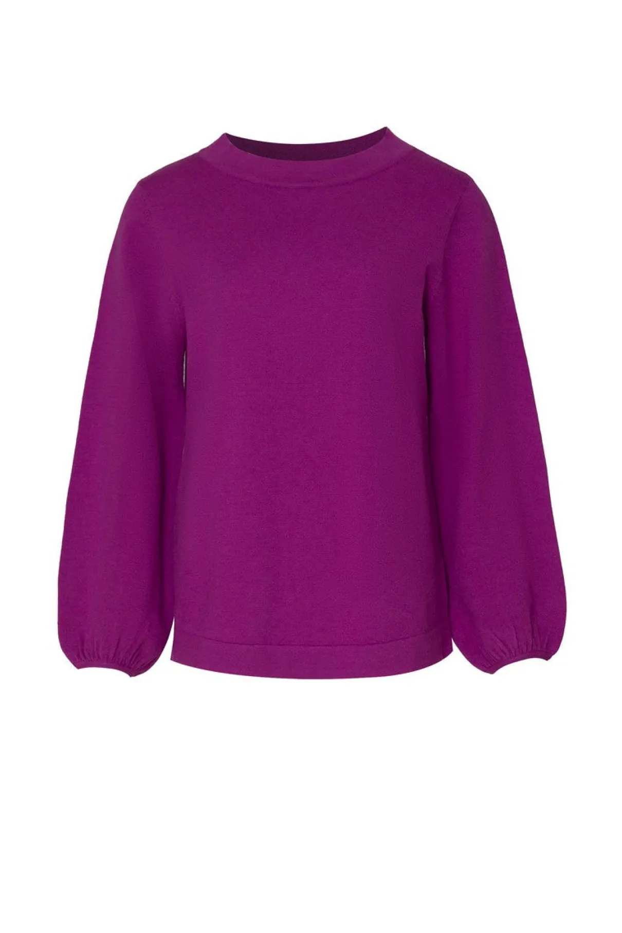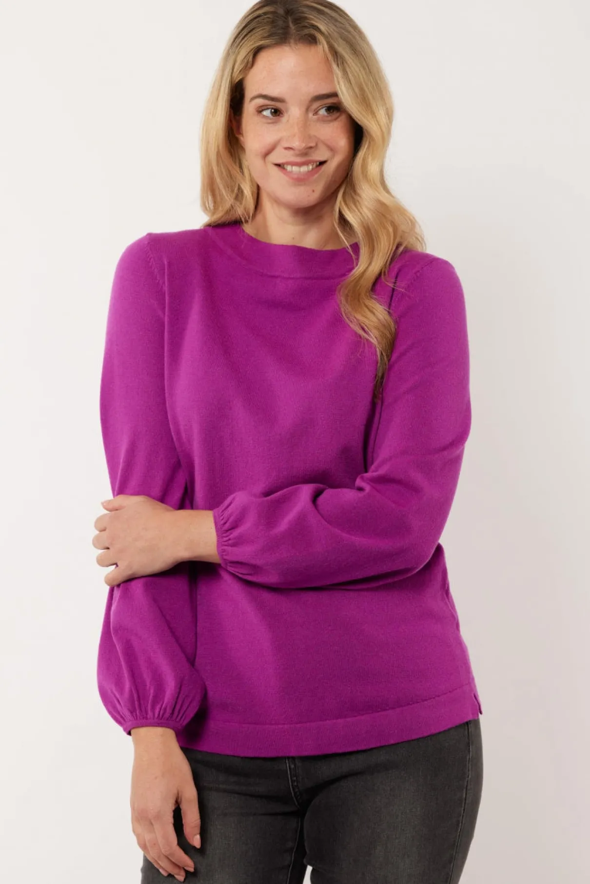 Een effen trui is wat iedere wintergarderobe nodig heeft om eindeloos looks mee te kunnen samenstellen. De zachte Anusha trui heeft een recht model met ballonmouwen en een hoog gesloten halslijn. Deze trui is verkrijgbaar in basis- en trendkleuren.