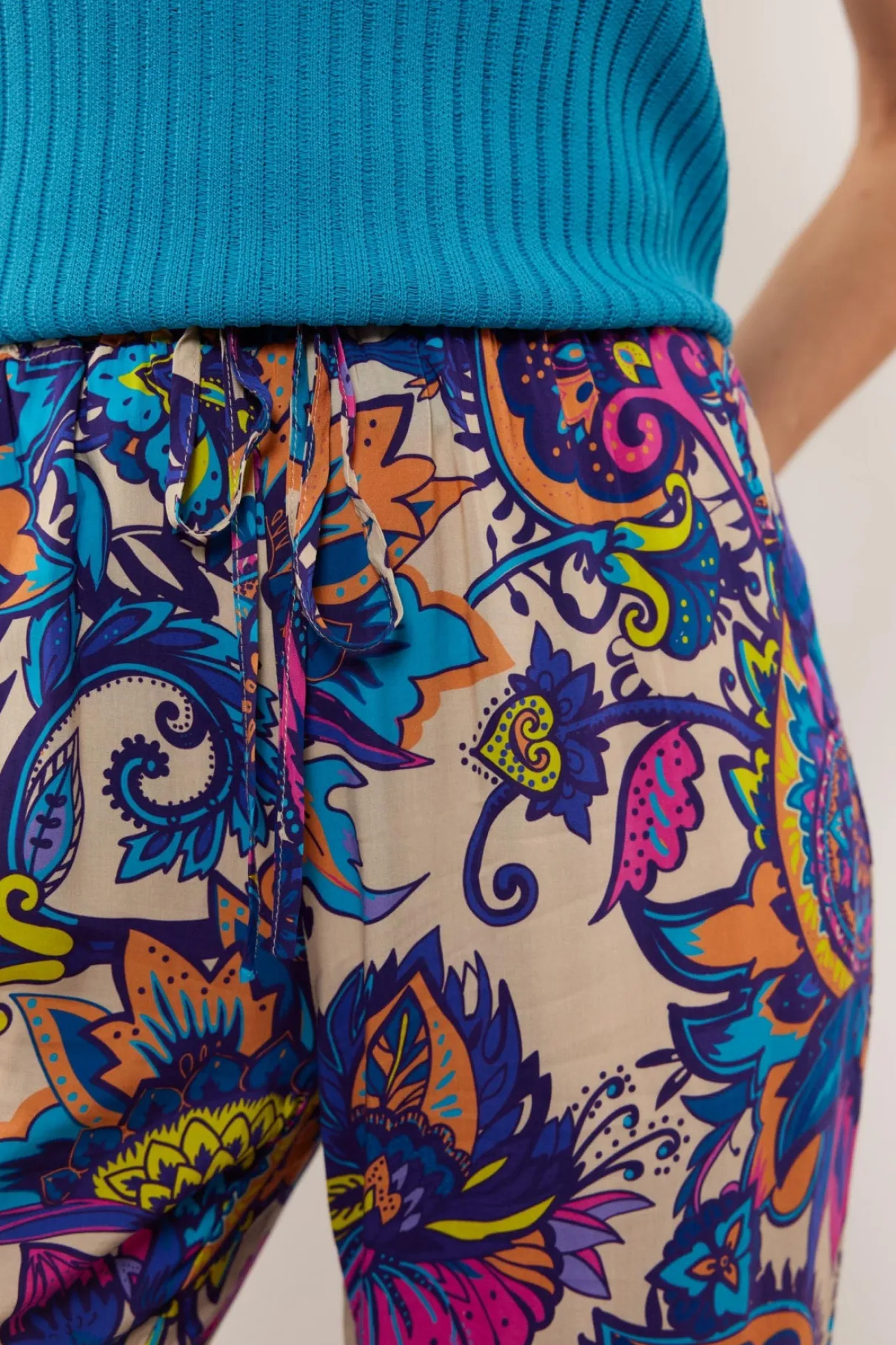 Maak deze zomer een kleurrijk statement met de eyecatching Beria broek. Deze broek heeft een recht, losvallend model voorzien van steekzakken en een striksluiting in de elastieken tailleband. Je kunt deze broek stylen met de Dominica top voor een complete set.