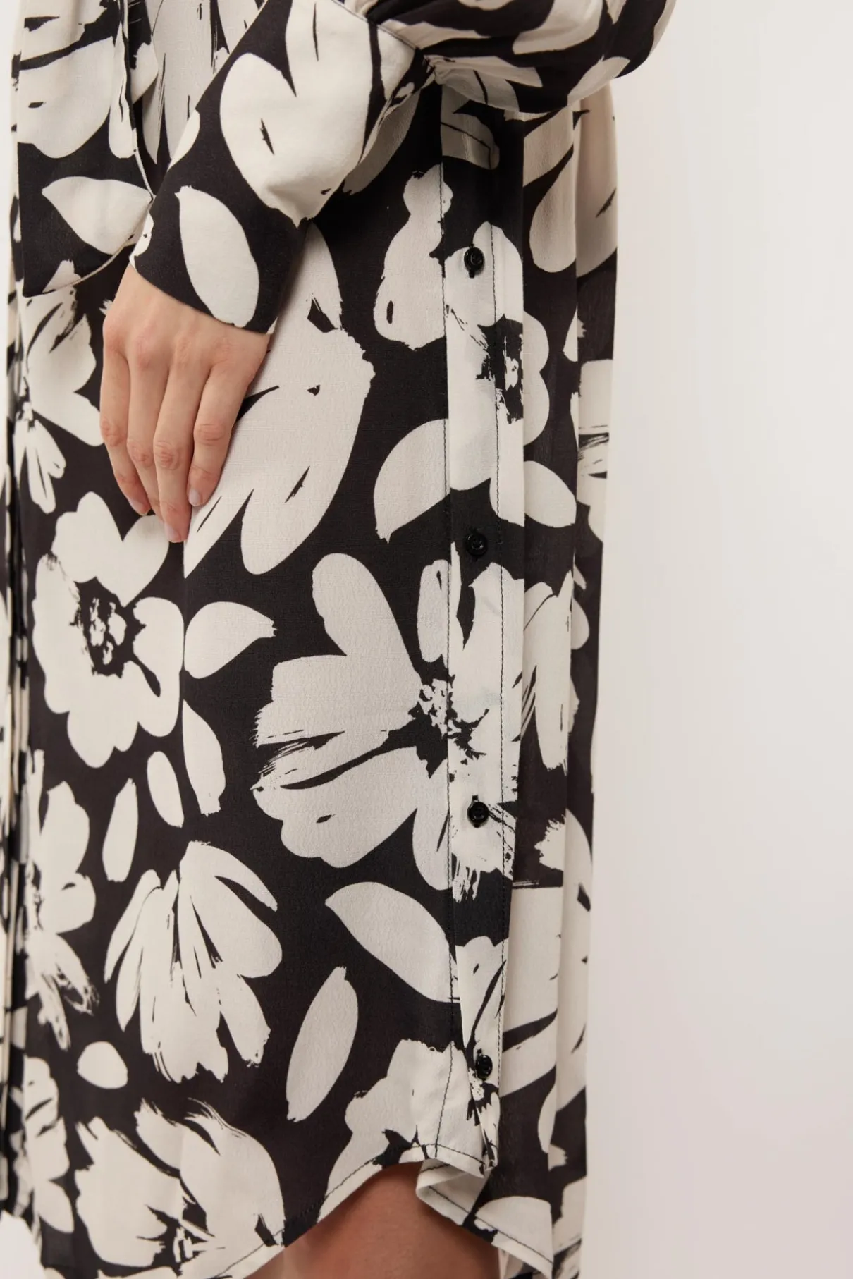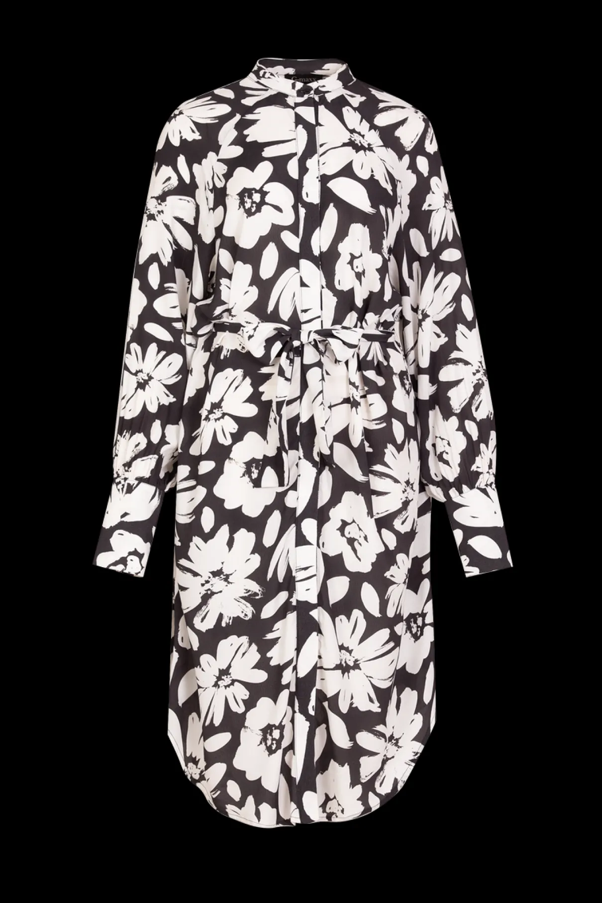 Ga voor een klassieke bloemenlook met de Bertine jurk. Deze jurk heeft een halflang model met een korte kraag, een knoopsluiting en een strikceintuur rond de taille.