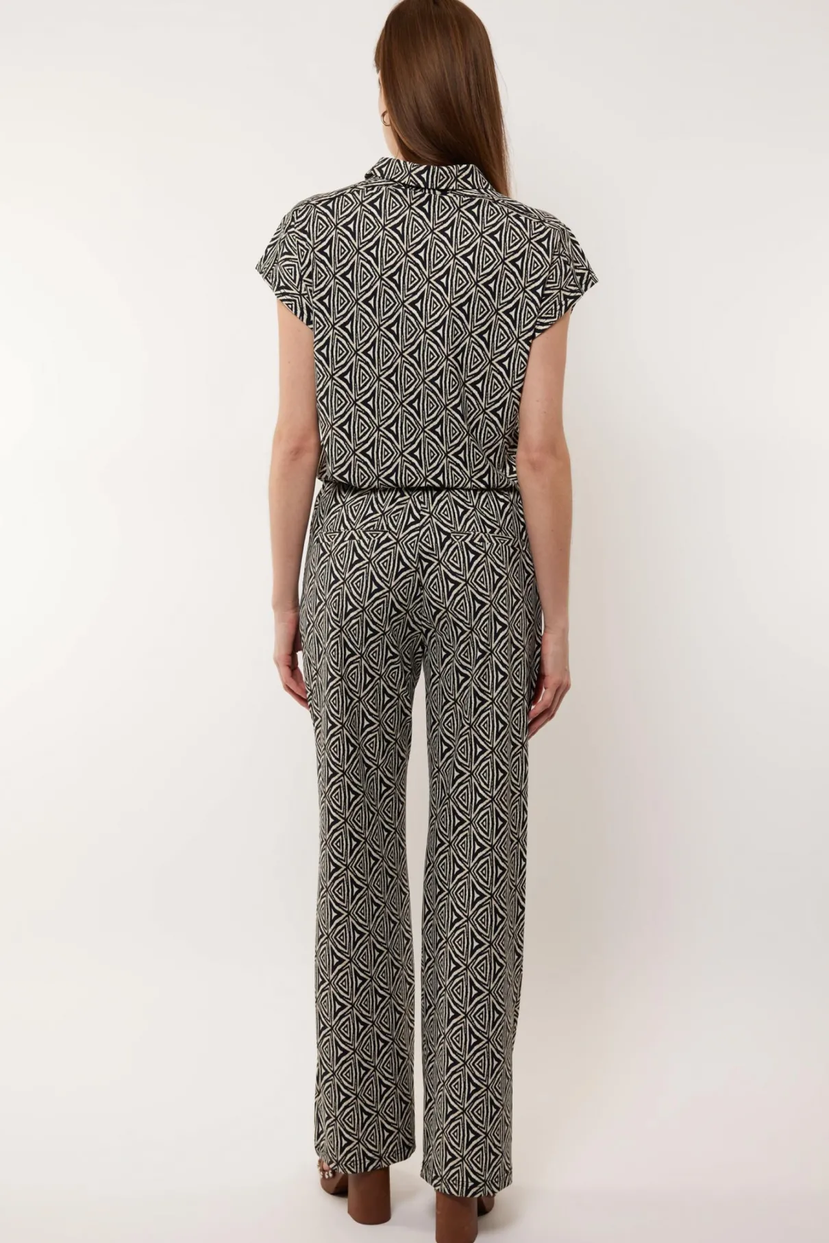 Met het flatterende flared ontwerp en opvallende print van de Caily broek, voegt deze broek een vleugje speelse elegantie toe aan elke zomerse outfit. Het lichte en ademende karakter van de travelstof zorgt voor een comfortabele pasvorm, zelfs op de warmste dagen. Dit maakt de broek niet alleen modieus, maar ook praktisch en veelzijdig. Je kunt de broek tot complete set stylen met de bijpassende Dila top of Nori blouse.