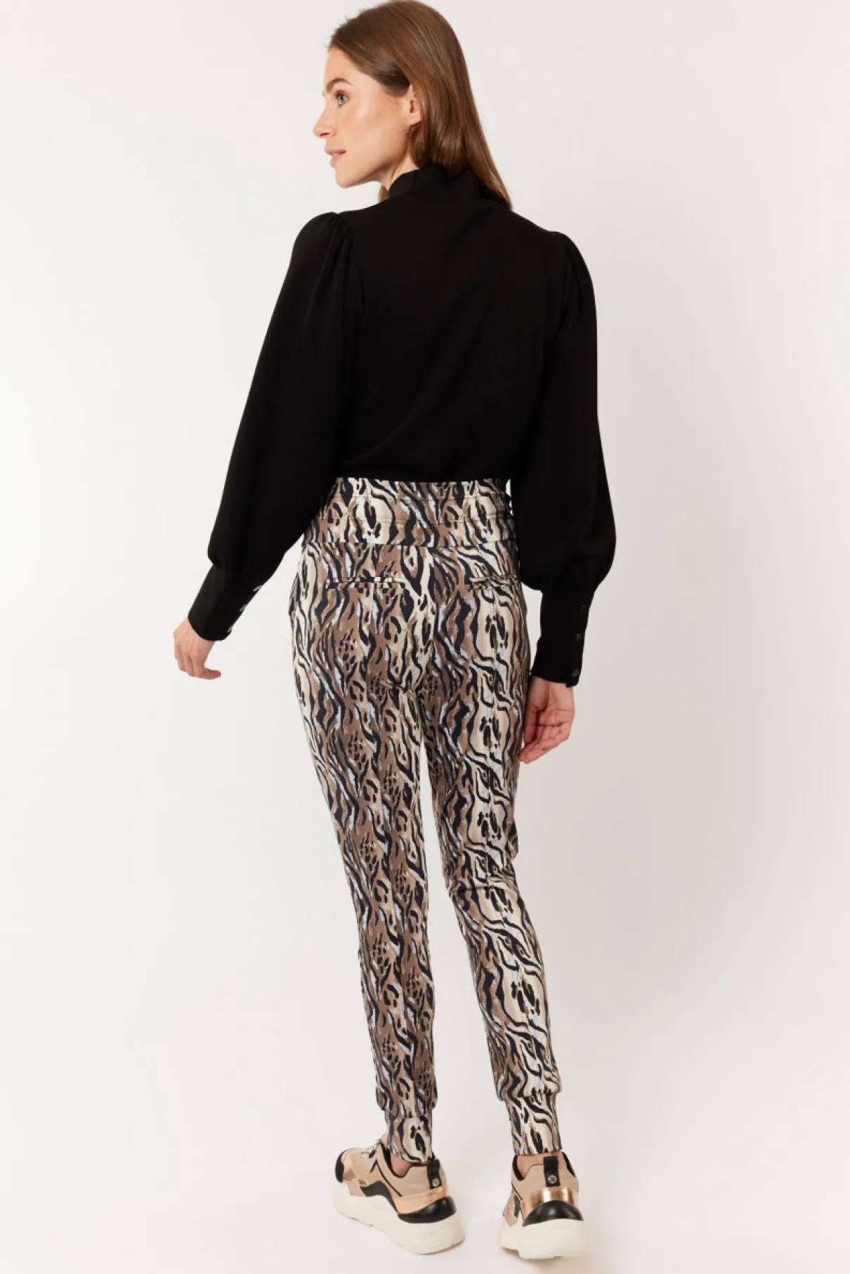 Animal Chic is terug! Ook dit najaar kiezen we voor prints die geïnspireerd zijn op de mooiste dierendessins. We gaan dit jaar op een chique trip tot the wild side met de Birgitte broek, gemaakt van Yoga Fabric. Deze broek heeft een aansluitend model met steekzakken en een striksluiting in de tailleband. Style deze broek met de Bo blouse voor een complete set.
