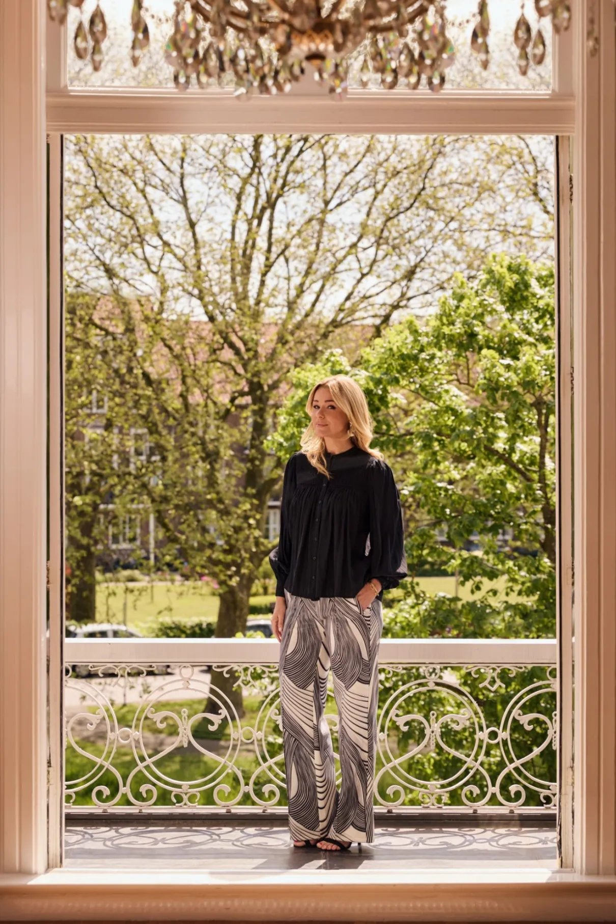 Het model is 178 cm lang en draagt maat S.
