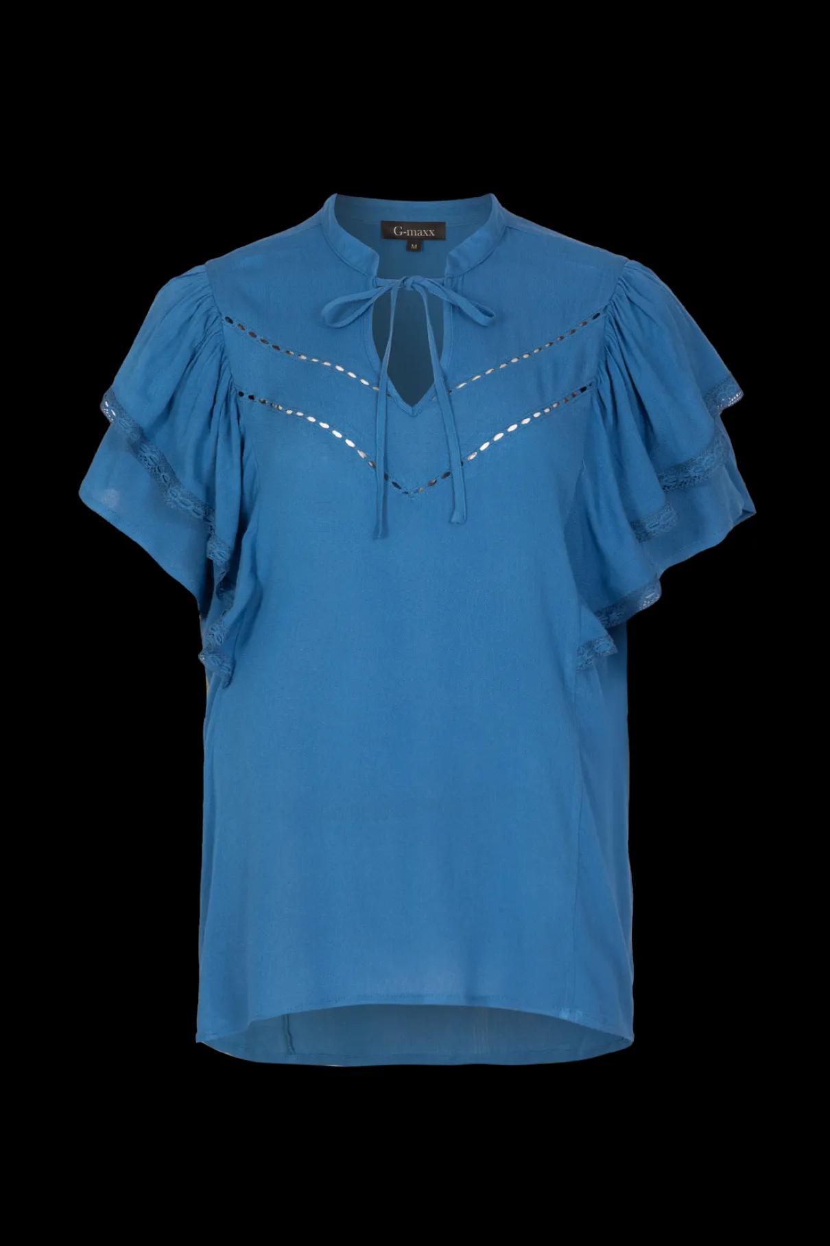 De Cecile top is perfect voor de warme zomerdagen door de luchtige en lichte stof. De top heeft een losvallend model en is voorzien van speelse details als kant, opengewerkte broderie op de borst en een striksluiting in de hals.