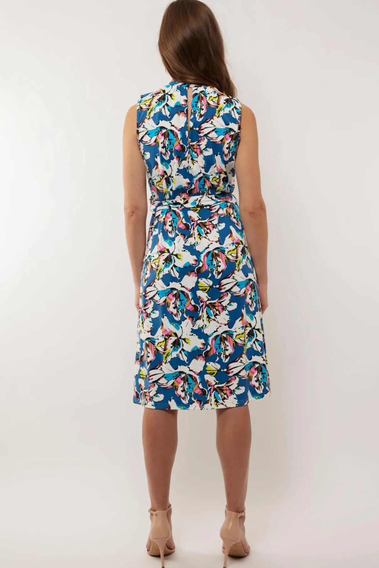 Laat je zomerlook stralen met het kleurrijke dessin van de Dido jurk. Deze jurk heeft een chic A-lijn model met een strikceintuur rond de taille en een open detail op de borst.