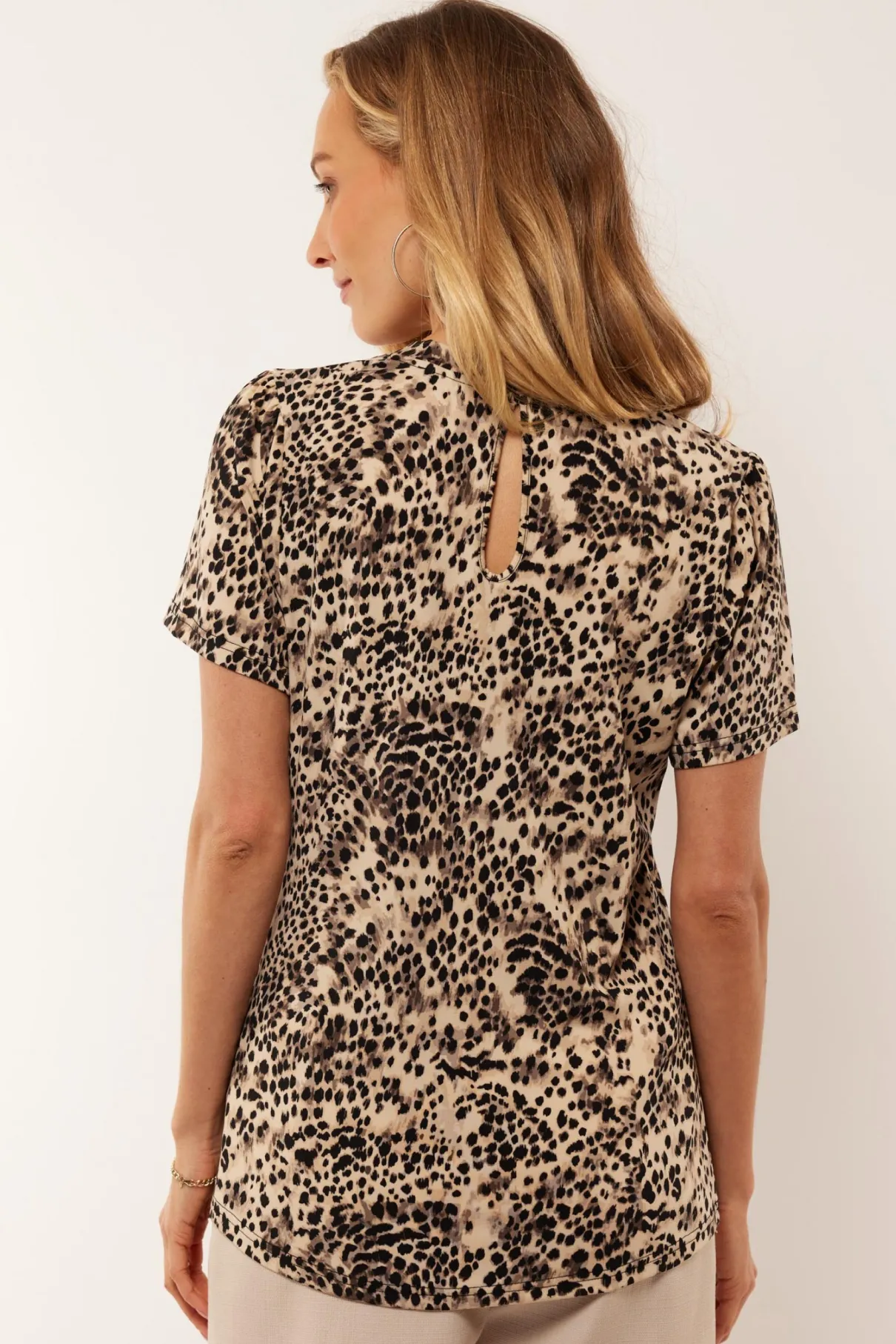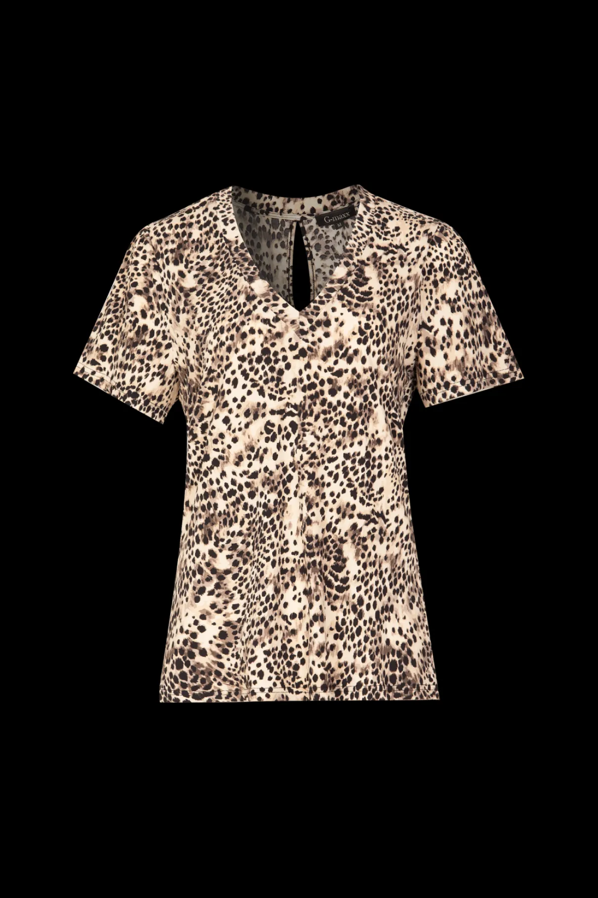 Betreed de zomerse dagen met een vleugje wilde elegantie en tijdloze stijl met de Dila top. De otp hefet een comfortabel aansluitend model met korte mouwen en een elegante V-hals. De top kan tot complete set gestyled worden met de speelse Bodil rok.