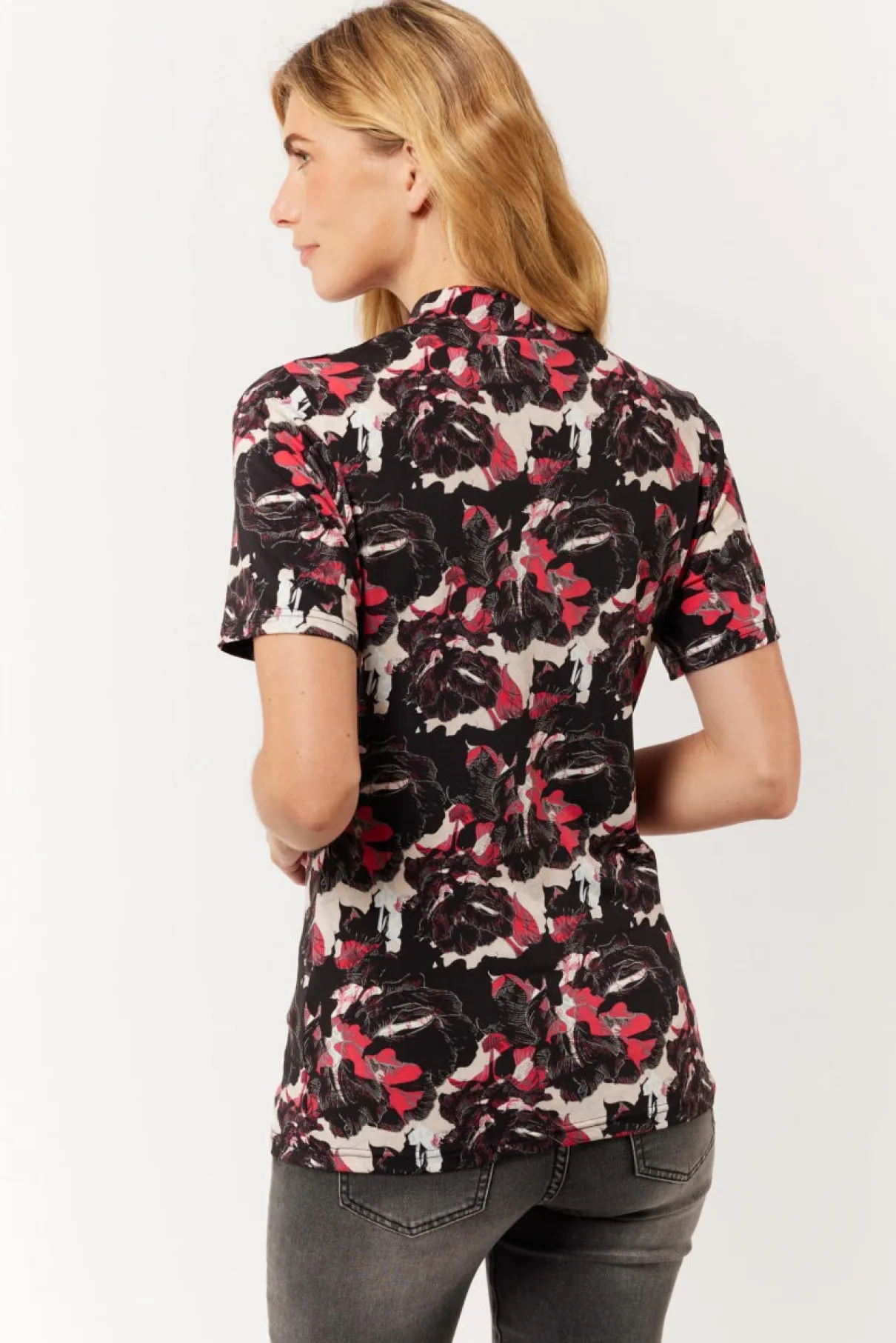 Marineblauw is één van de favoriete accentkleuren van dit najaar. Zo ook terug te vinden in het dessin van de terugkerende Eef top. Deze top heeft een aansluitend model met korte mouwen en een korte col.