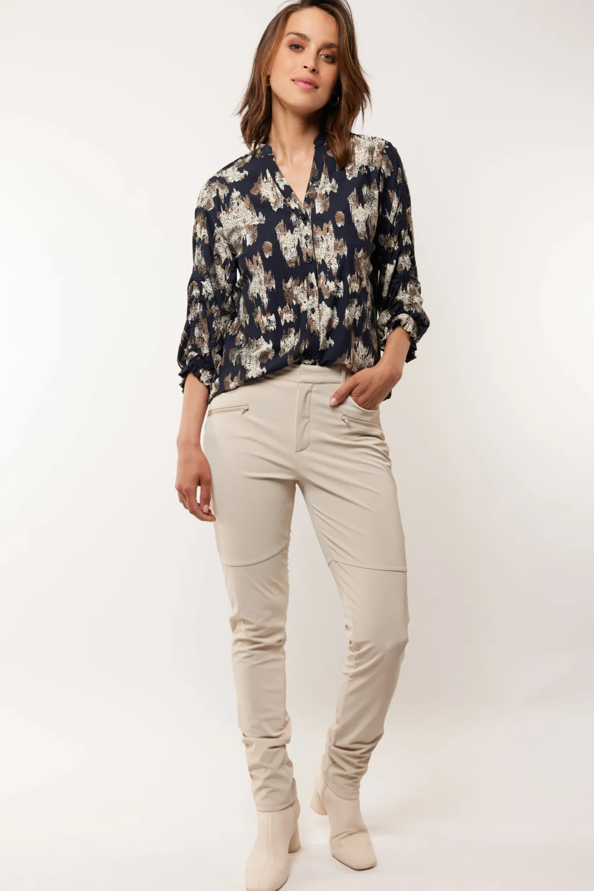 Ga voor sophisticated en duurzaam comfort met de Elina broek. Deze broek heeft een aansluitend model met een rits- en knoopsluiting en rits steekzakken. Verkrijgbaar in 2 kleuren.