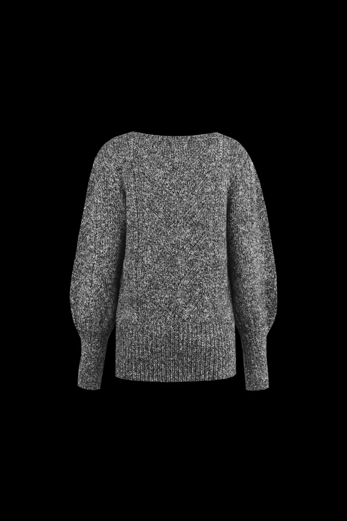 Ontdek de Elisse trui, een perfecte mix van comfort en stijl. De trui heeft een subtiel, geometrisch breipatroon aan de voorkant, wat zorgt voor een stijlvolle uitstraling. De mouwen zijn wijd en de boorden zijn ribgebreid, wat bijdraagt aan een comfortabele en warme pasvorm.