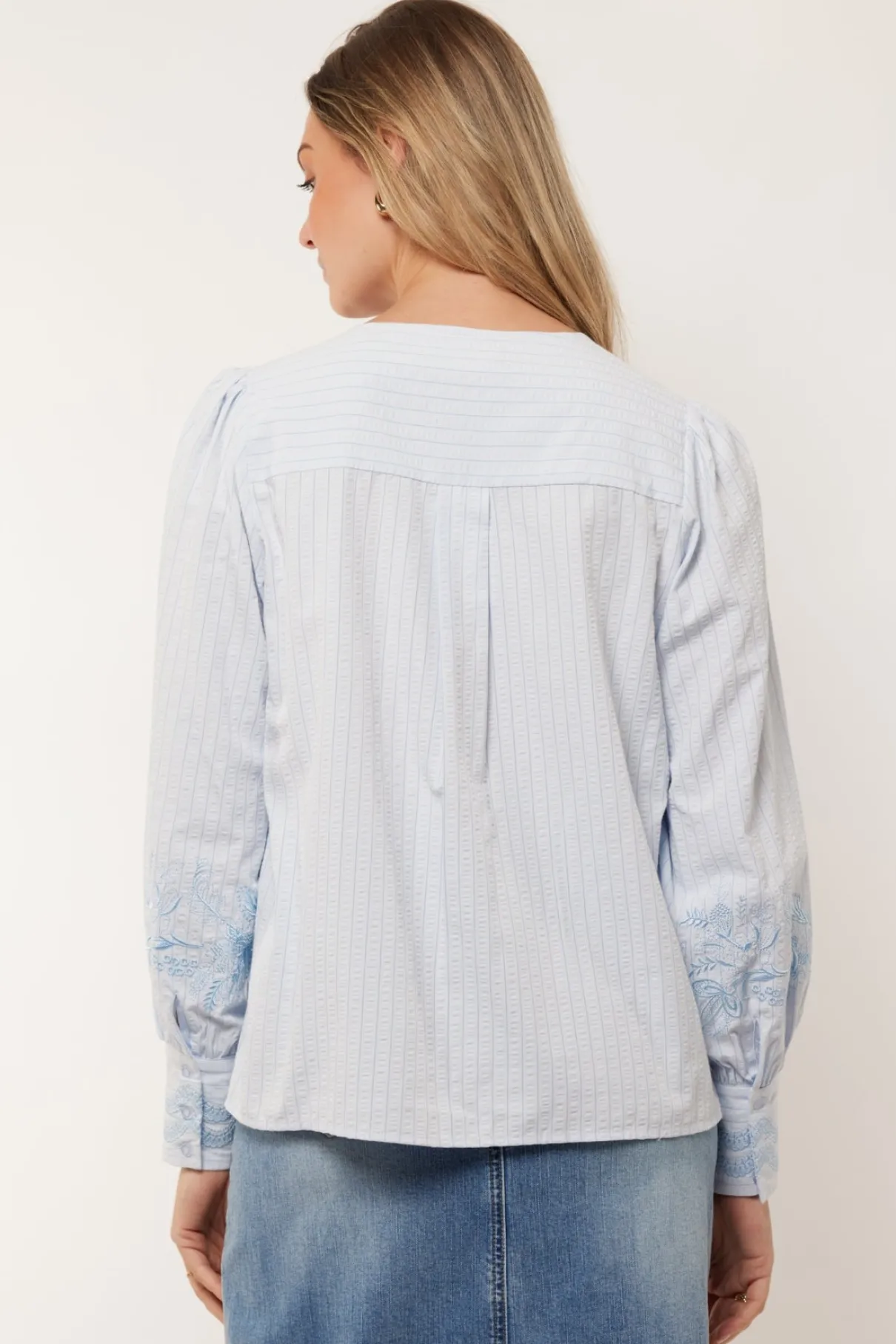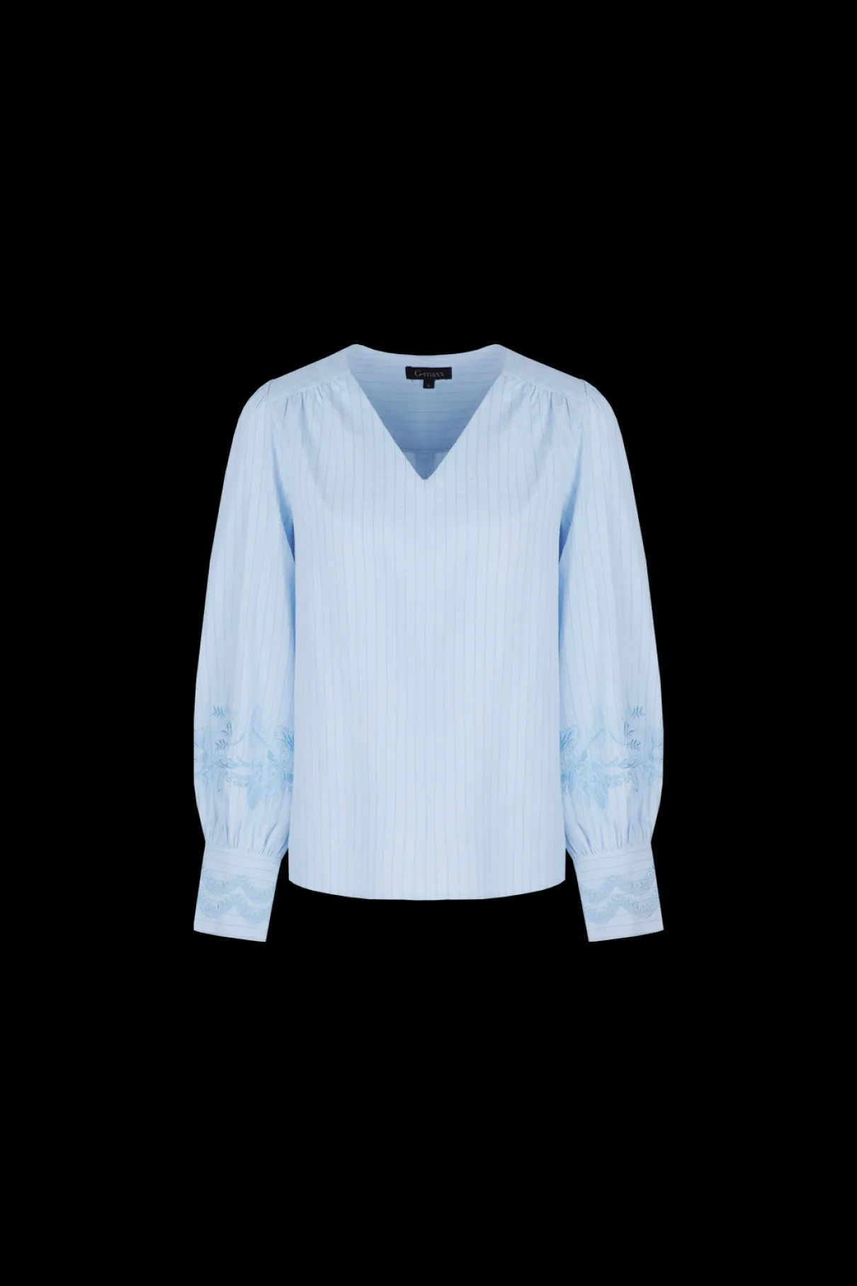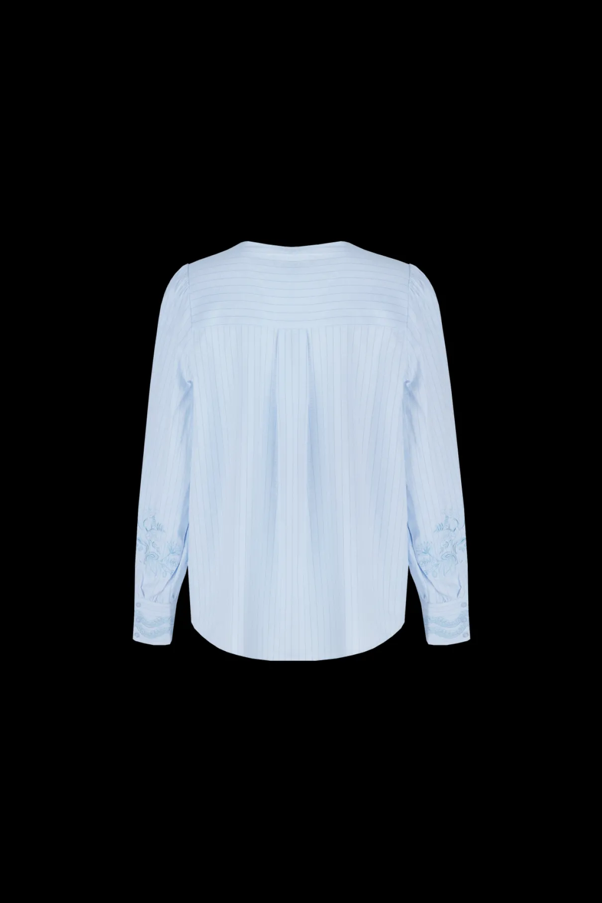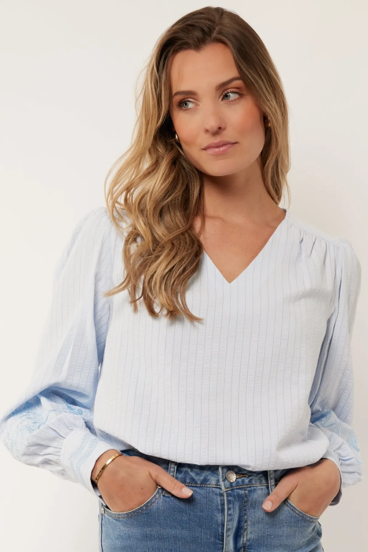 De Indy top heeft een moderne uitstraling met een broidery design op de mouwen. De V-hals en zachte stof maken het een comfortabele keuze. Combineer met een jeans of rok voor een stijlvolle dagelijkse look.