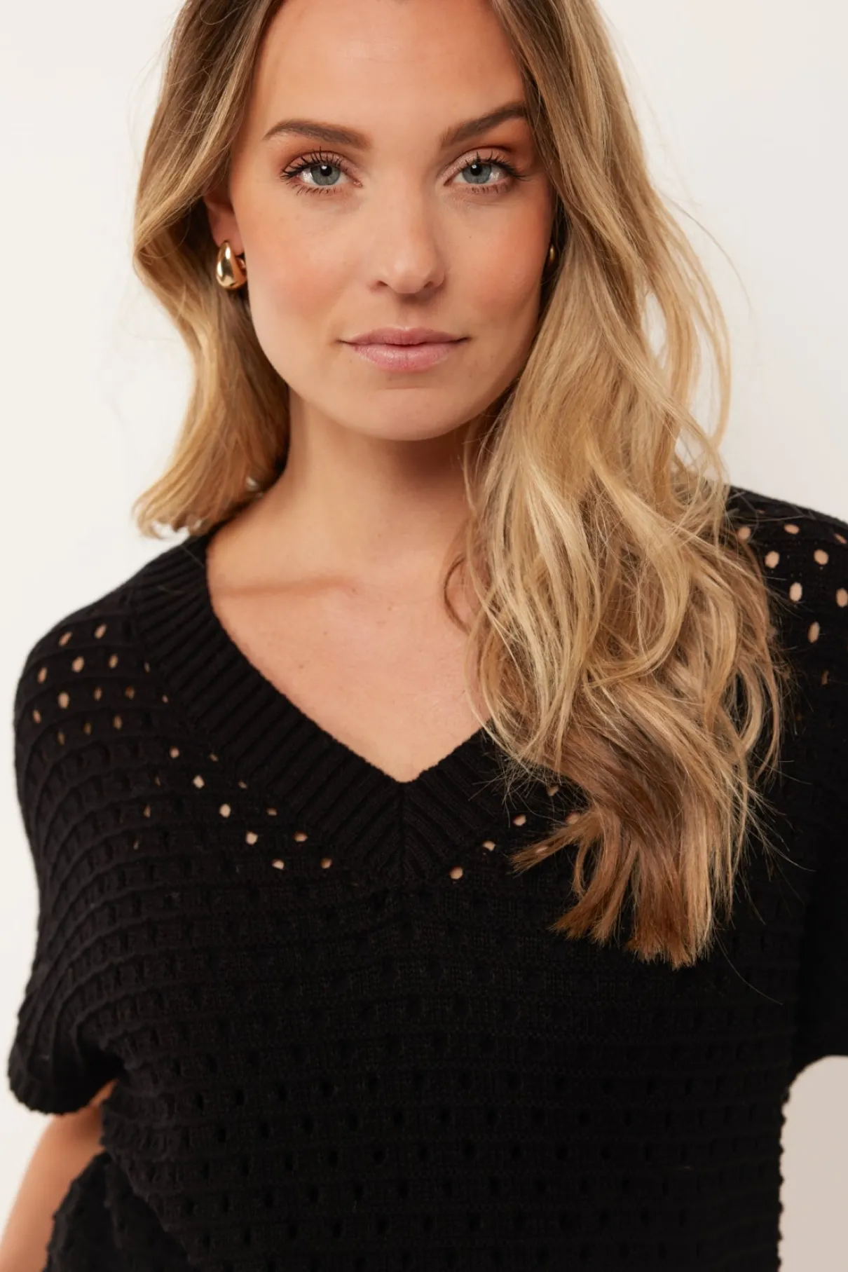 De Lane top is voorzien van subtiel gebreid materiaal.De V-hals geeft het een elegante uitstraling, ideaal voor diverse gelegenheden. Combineer met een pantalon of rok voor een stijlvolle look.