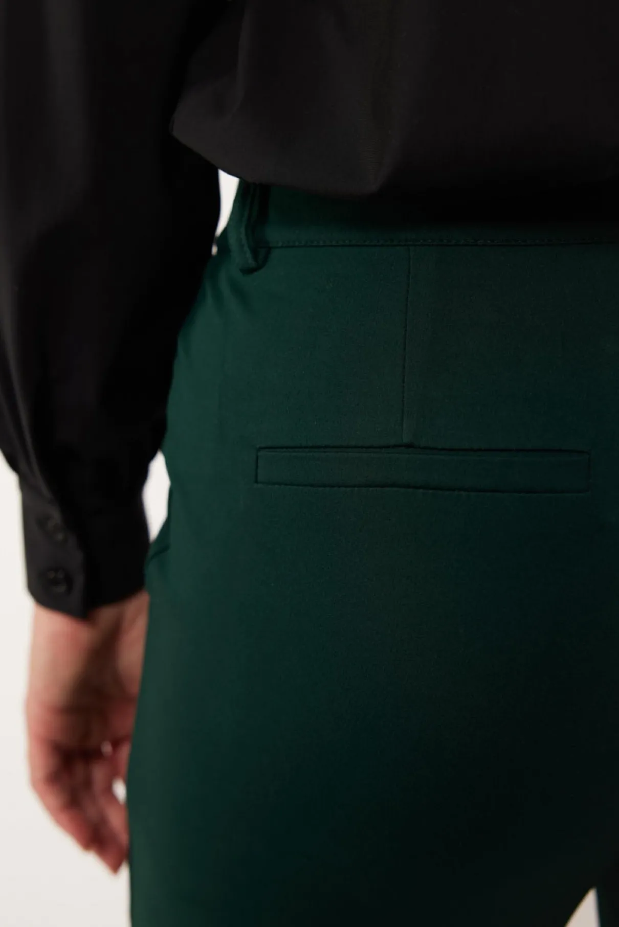 Ga voor sophisticated en duurzaam comfort met de Laurena broek, gemaakt van yoga stof. Deze broek heeft een aansluitend model met wijdlopende broekpsijpen, een rits- en knoopsluiting en steekzakken. Combineer deze broek met de Annabel top of de Aimy blouse voor een complete set.