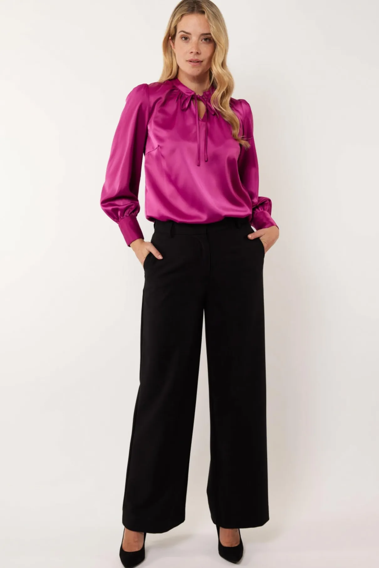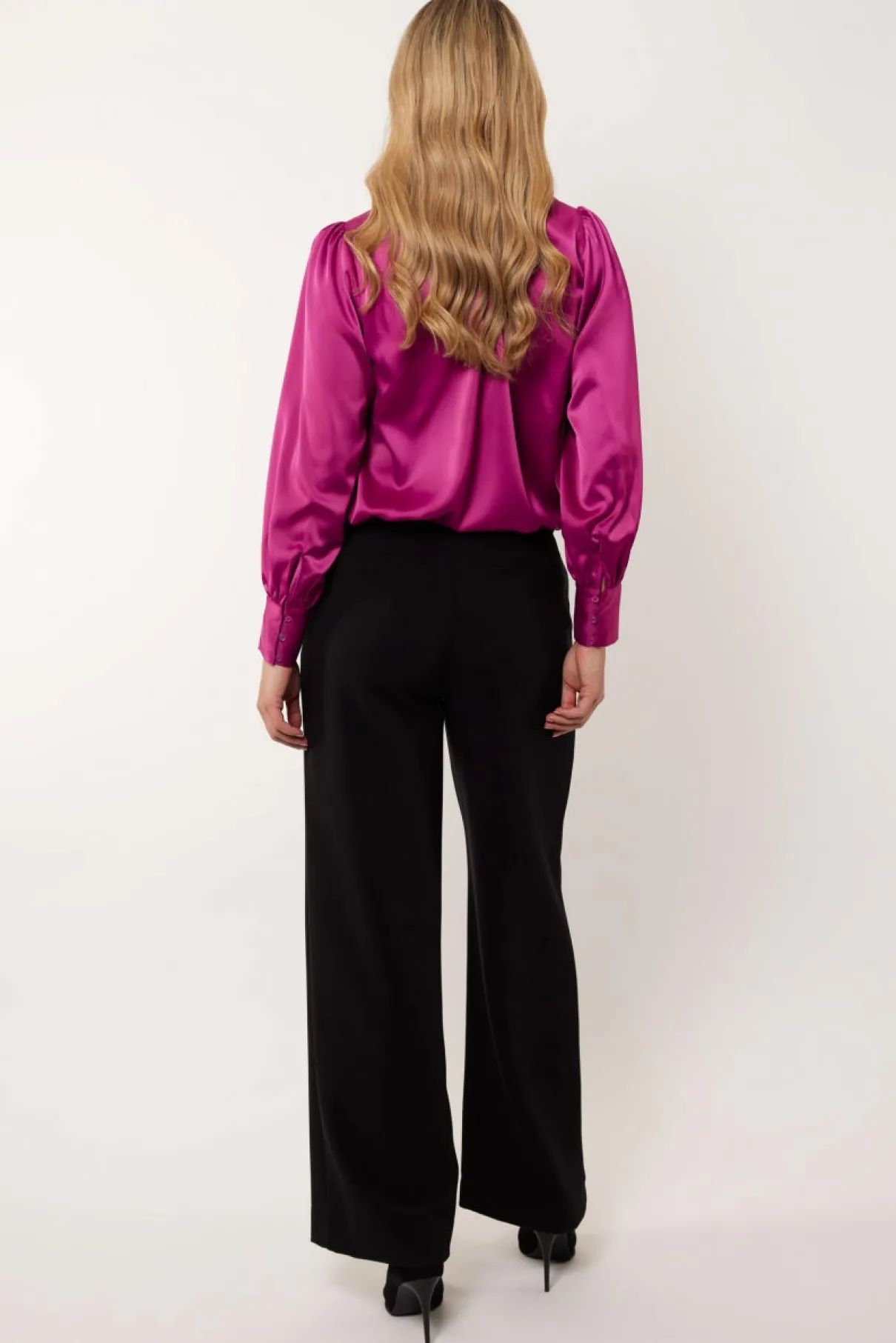Ga voor chic comfort met de wide-leg Marije broek, gemaakt van een comfortabel materiaal. De broek is voorzien van een rits- en knoopsluiting, steekzakken aan de voorzijde en paspelzakjes aan de achterzijde.