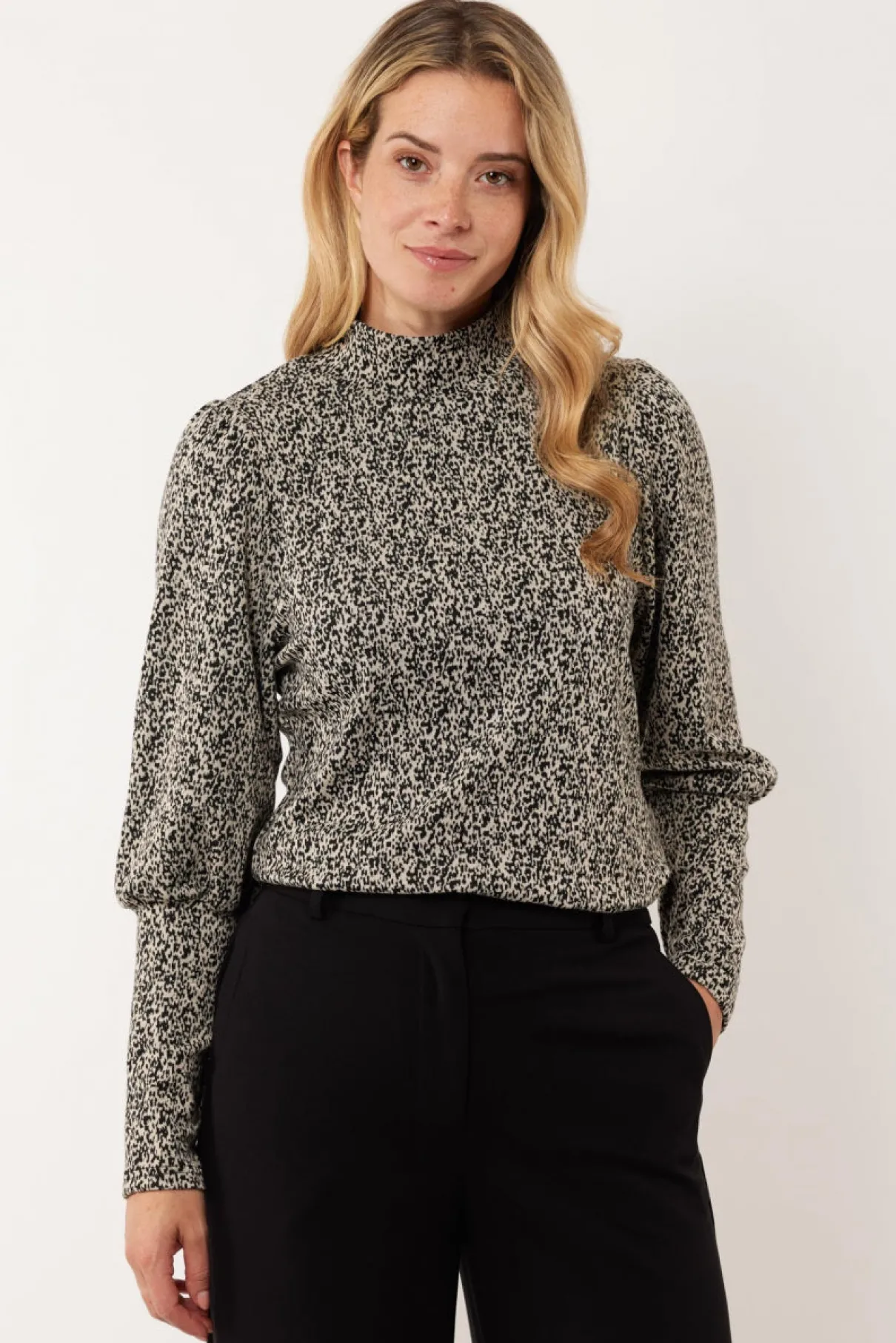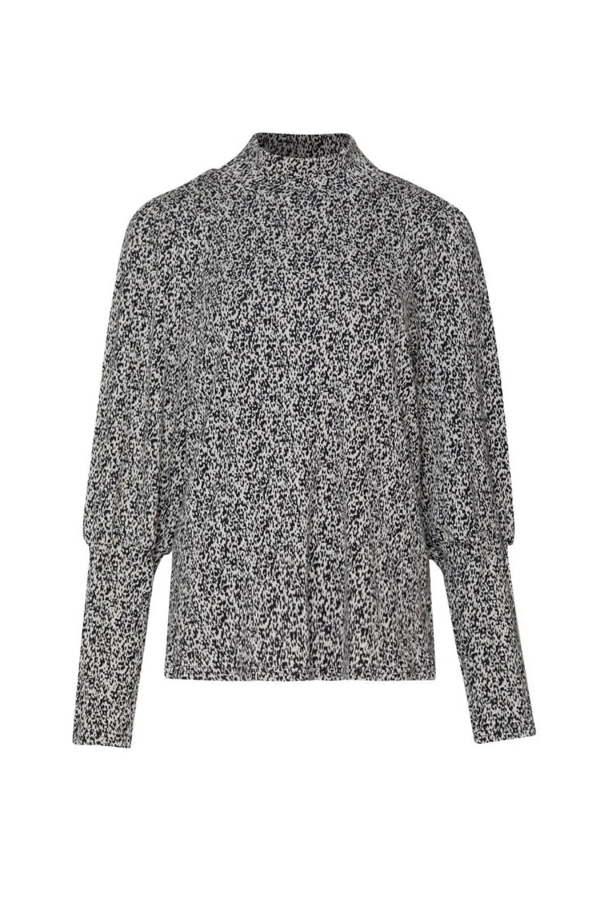 Zwart-witte prints zijn altijd goed. Zo ook het dessin van de Marinka top. Deze top heeft een recht model met een hooggesloten hals en ballonmouwen. Combineer deze top met de Marilyn broek voor een complete set.