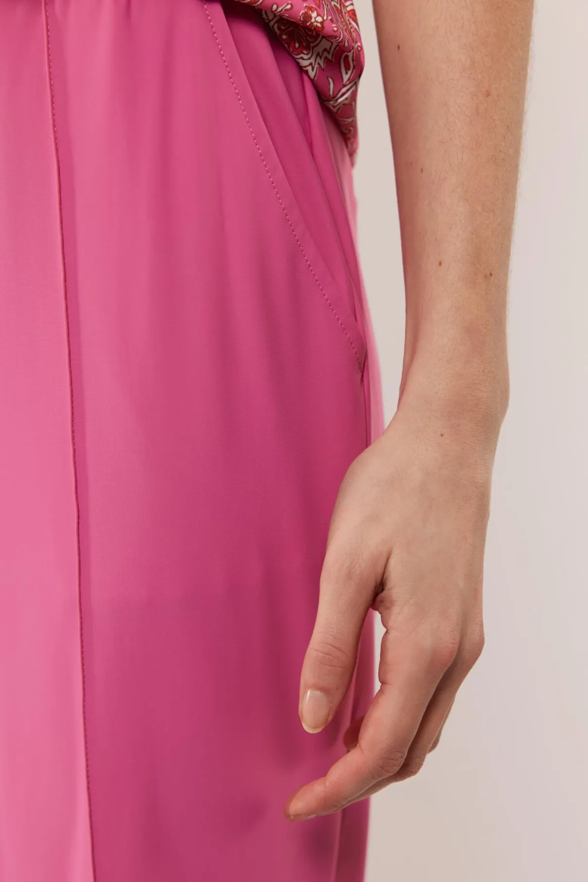 De Mirna broek is gemaakt van hoogwaardige travelstof waardoor deze een musthave is voor de zomergardobe. De broek heeft een elegant, wijdlopend model met steekzakken en een elastieken tailleband, die de broek een hoog draagcomfort bieden.