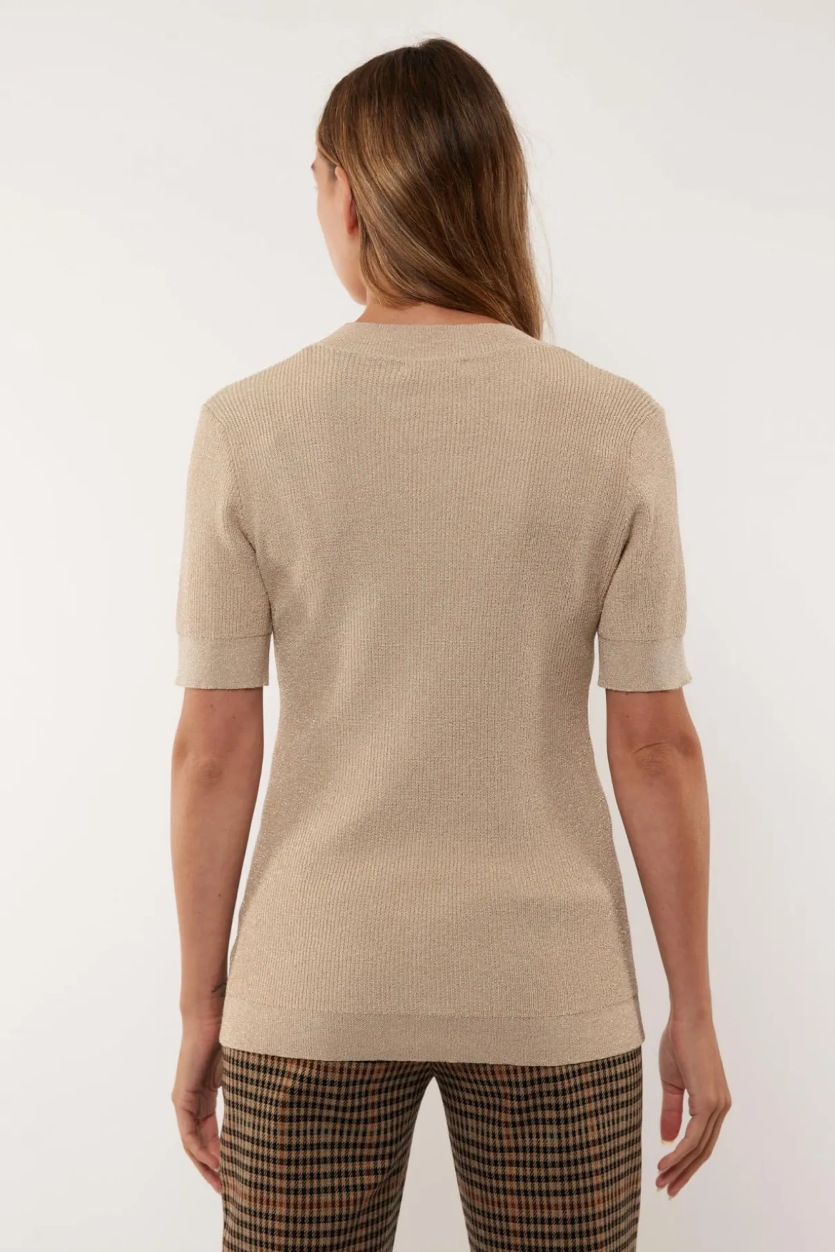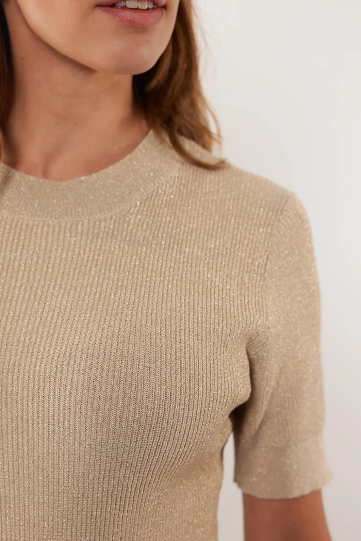 De Raquel top is een basic trui die je in iedere look kunt combineren. Deze trui heeft een aansluitend model met korte mouwen, een korte col en is voorzien van een subtiele glinstering. De trui is verkrijgbaar in het zwart, roomwit, donkerblauw en dennengroen.