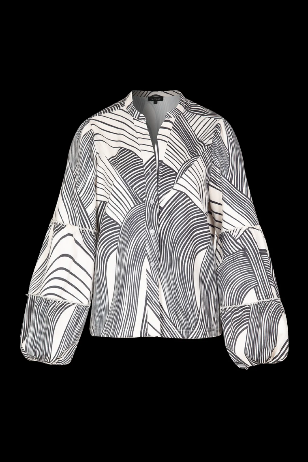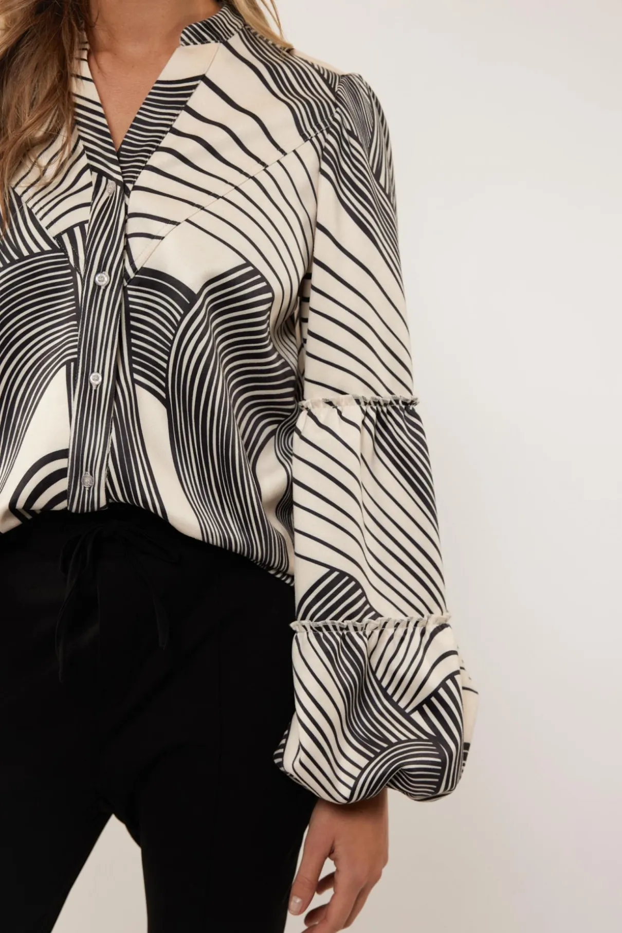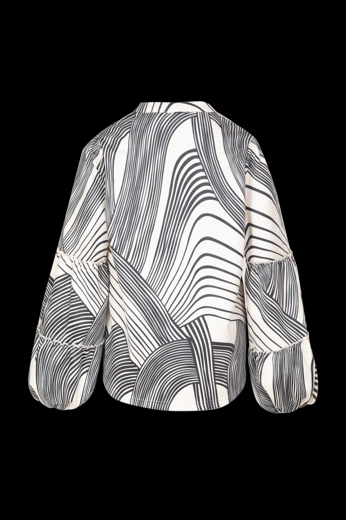 Grafische prints zijn dit voorjaar weer helemaal hot. De Aimy blouse heeft een recht model met statement ballonmouwen. Style deze blouse met de Miley broek voor een complete set.