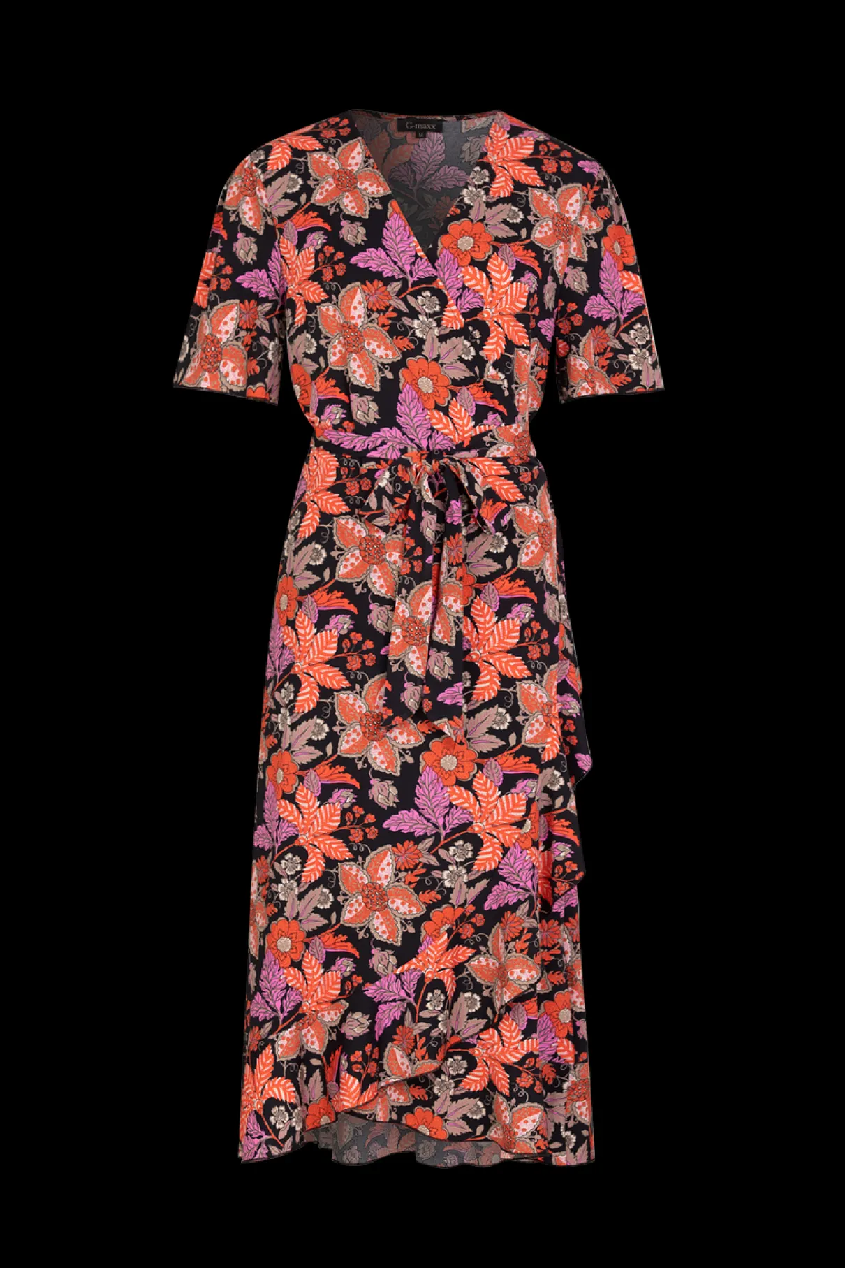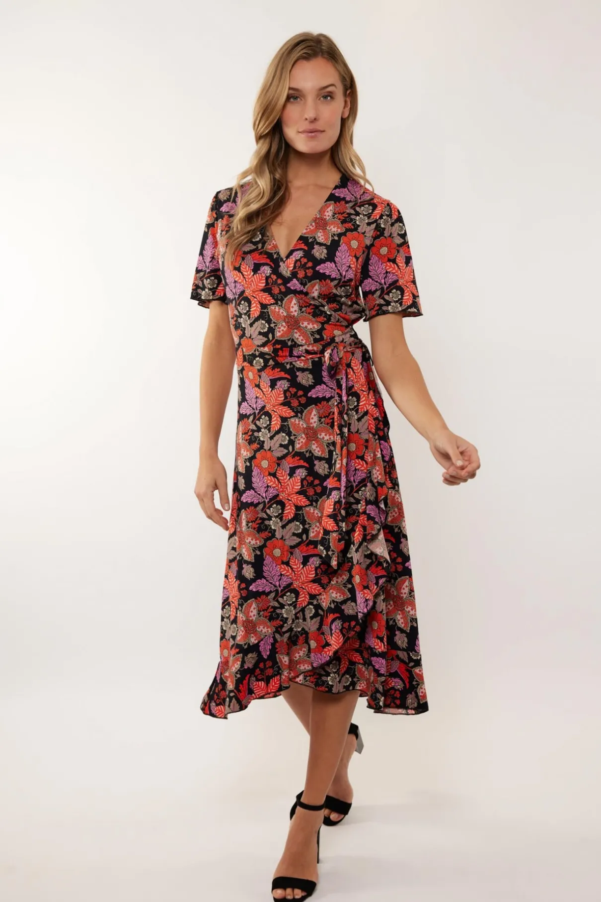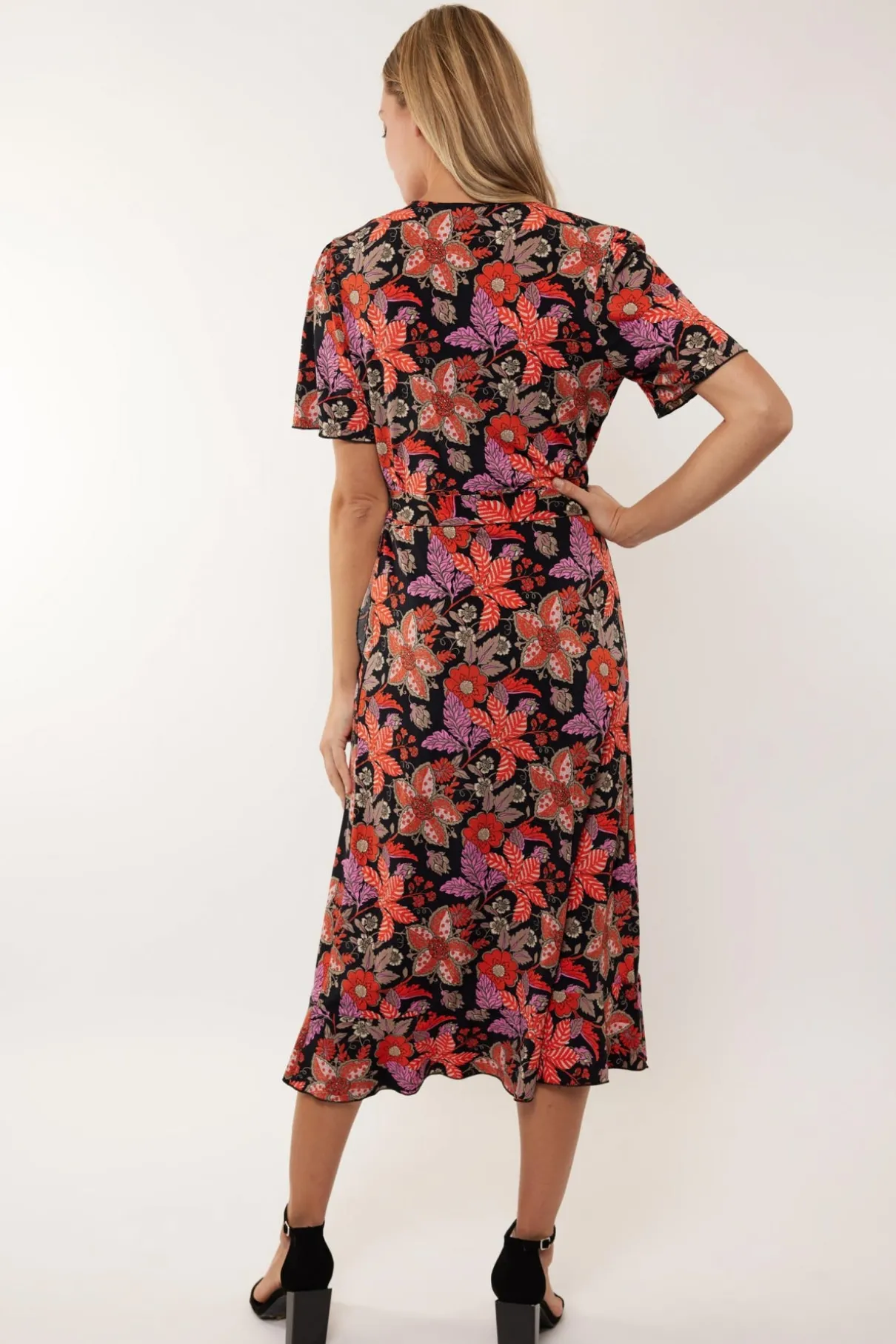 Haal het voorjaar naar je look met de kleurrijke bloemenprint van de Anastasia jurk. Deze jurk heeft midi- omslag met een striksluiting.