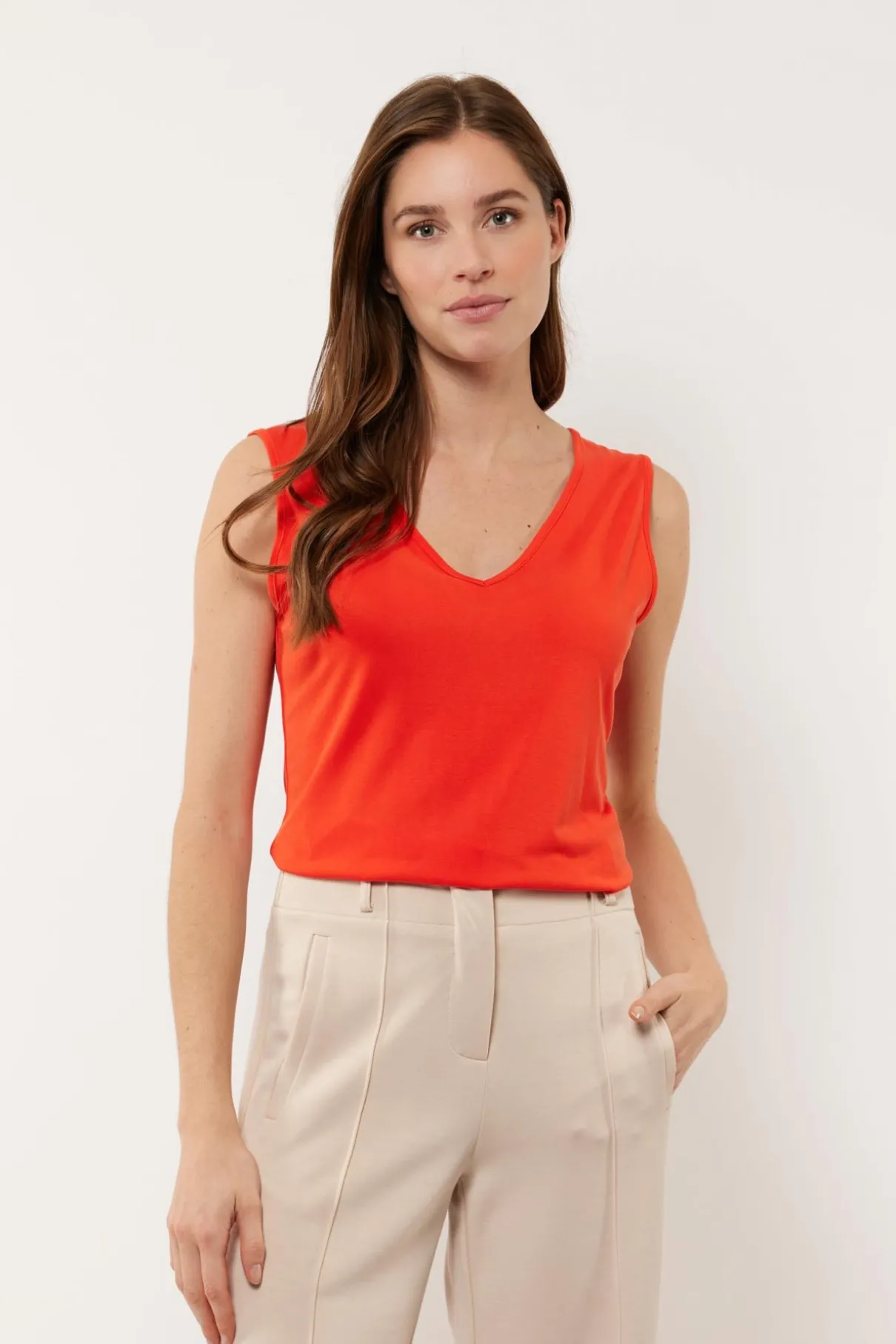 De Bao top is een mouwloze, basis top dat in iedere look gestyled kan worden. Zowel in een casual look met een fijn vest als een chique outfit met een mooie blazer.