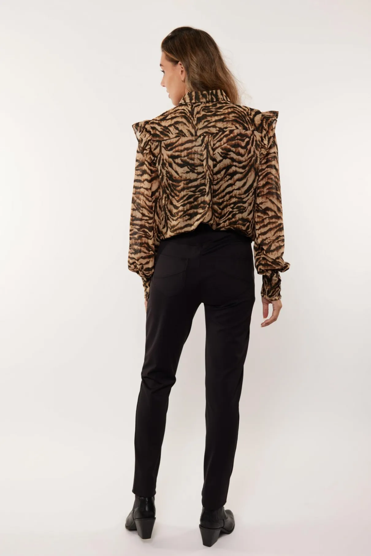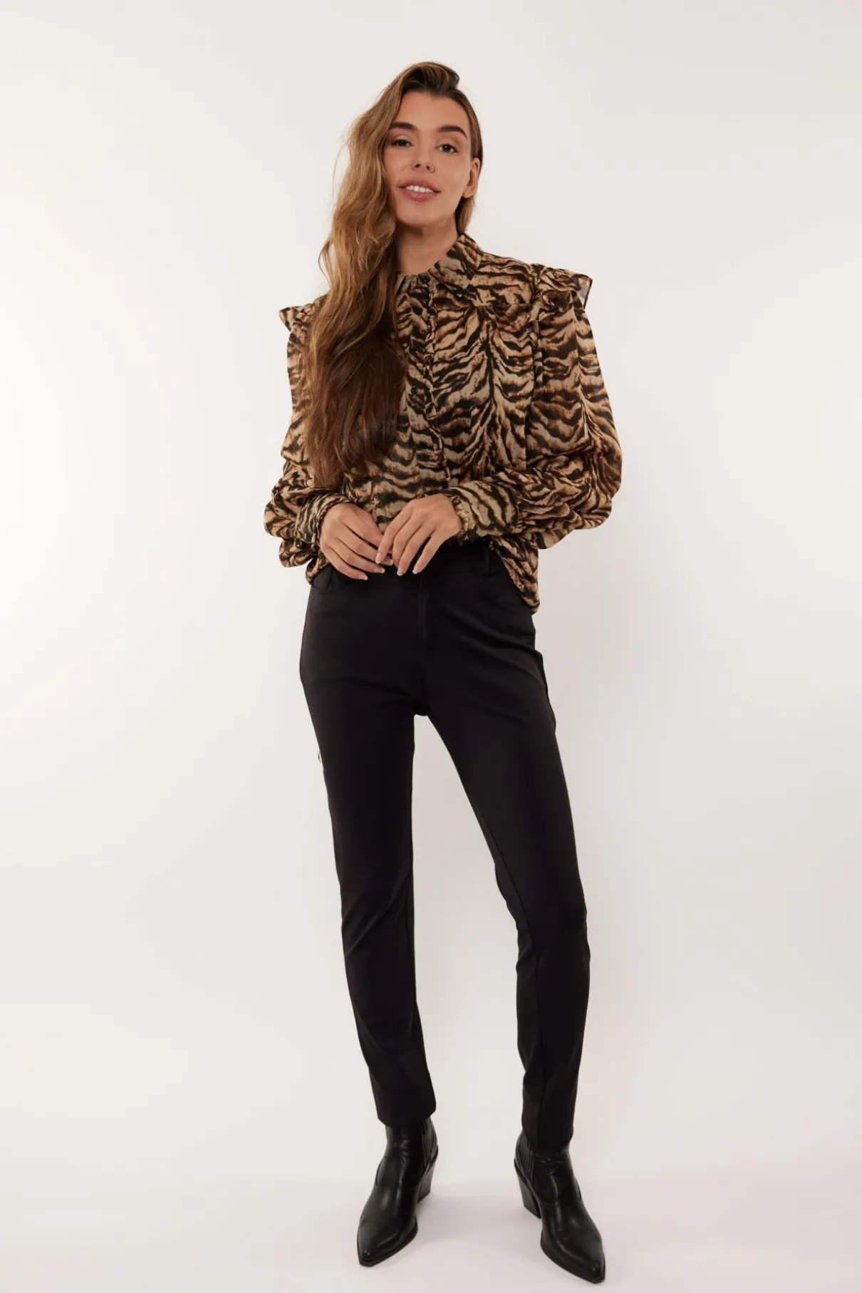 Ga voor een hoog draagcomfort met de Beau broek, gemaakt van Yoga stof. De broek heeft een aansluitend model met steekzakken, een rits- en schuifsluiting en riemlussen.