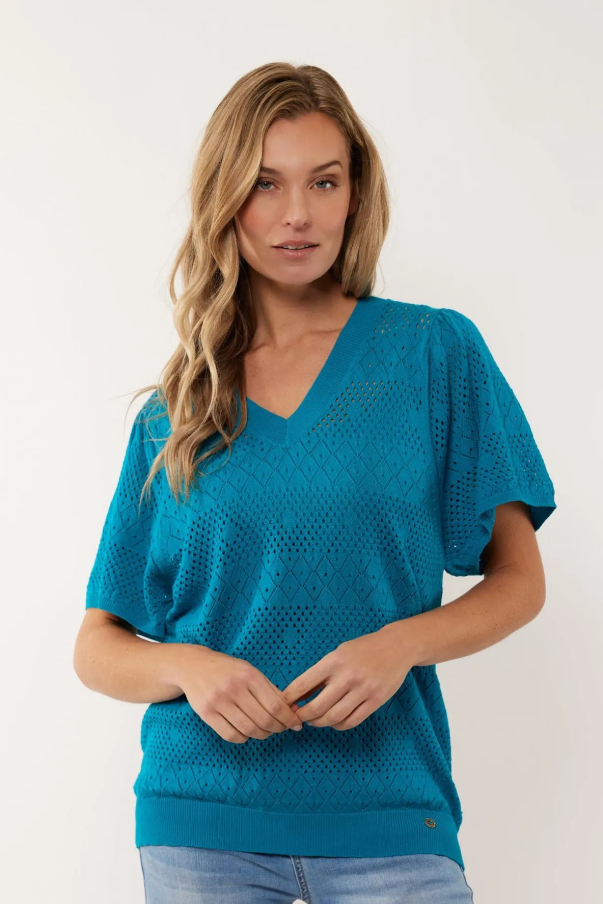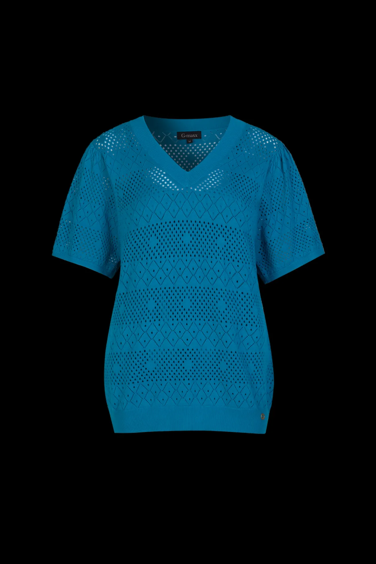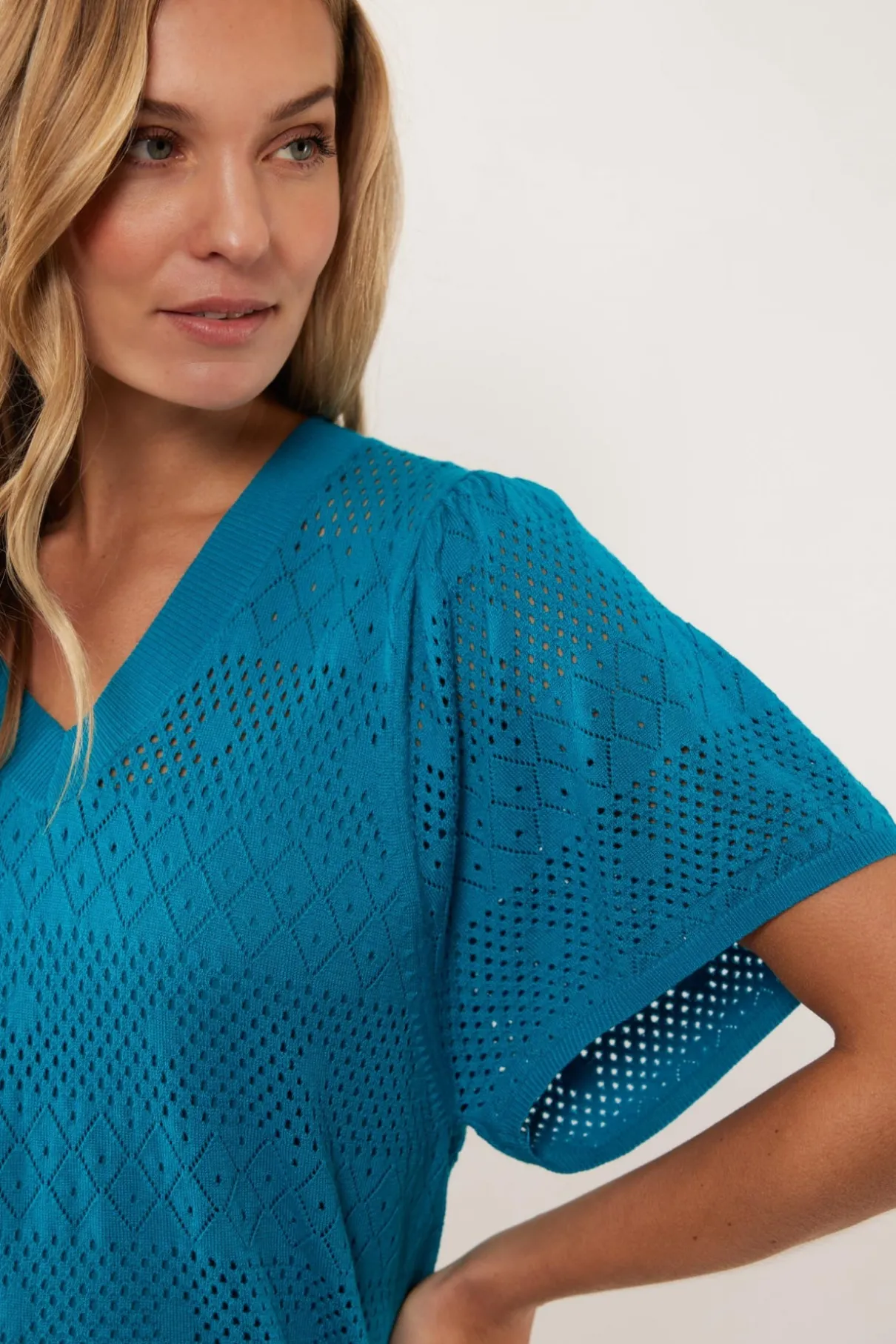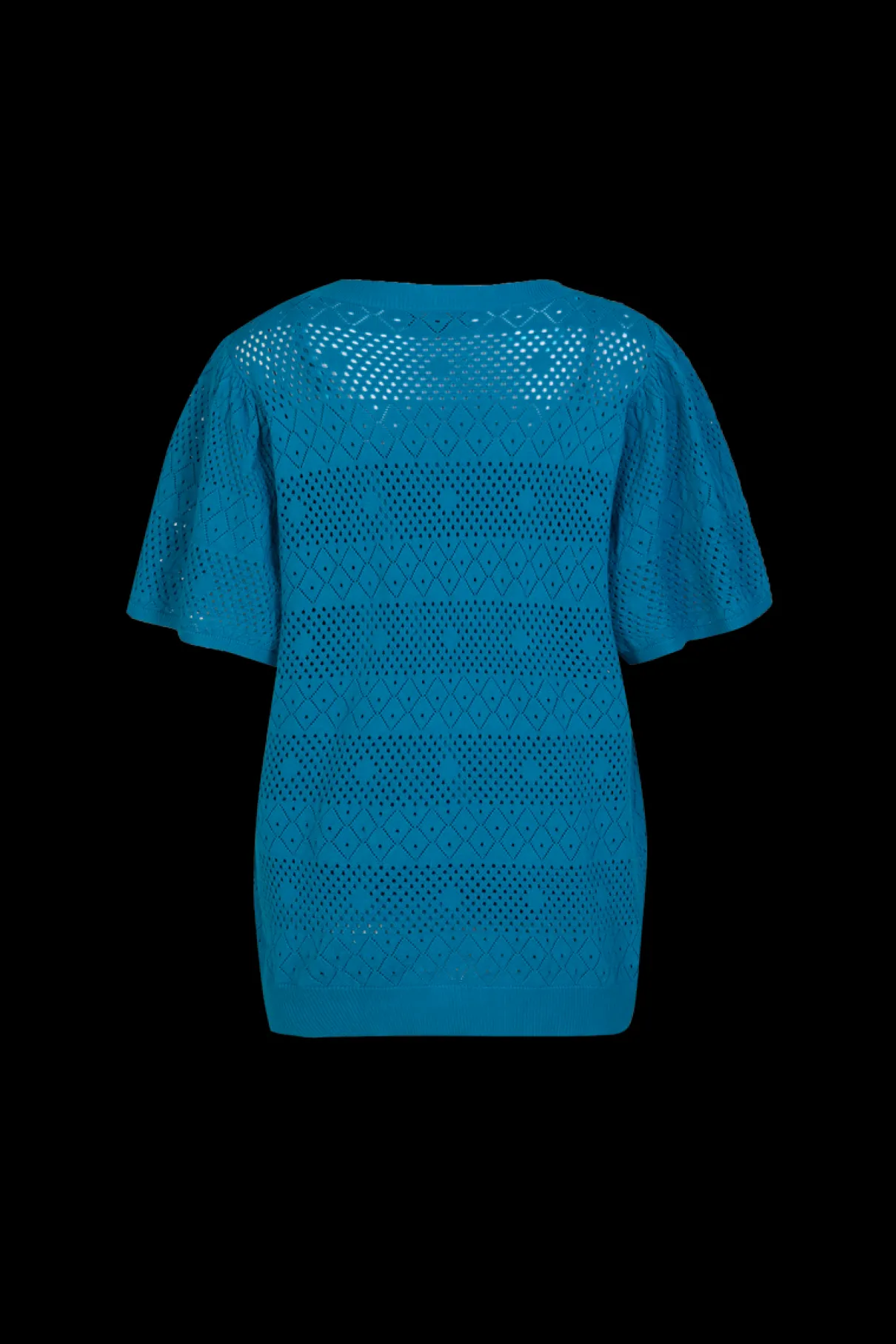 De Beertje trui is ideaal voor het steeds warmer wordende weer. Deze trui is namelijk voorzien van een opengewerkt motief en heeft een losvallend model met een V-hals.
