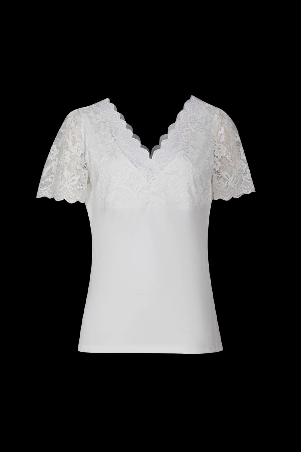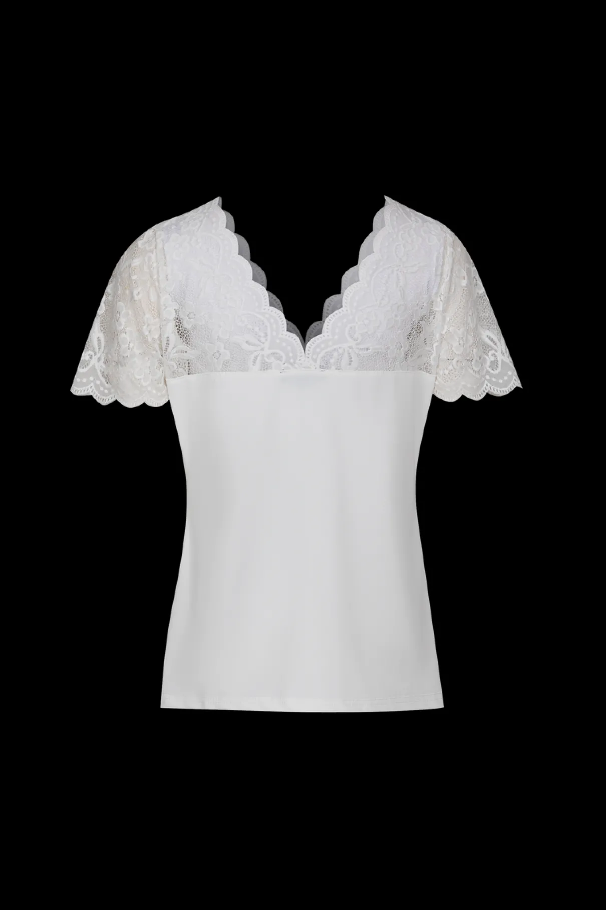 De Belicia top is de ideale basis van een voorjaarslook door de toevoeging kant. De top heeft een aansluitend model met korte mouwen en een V-hals. De top is in diverse kleuren verkrijgbaar.