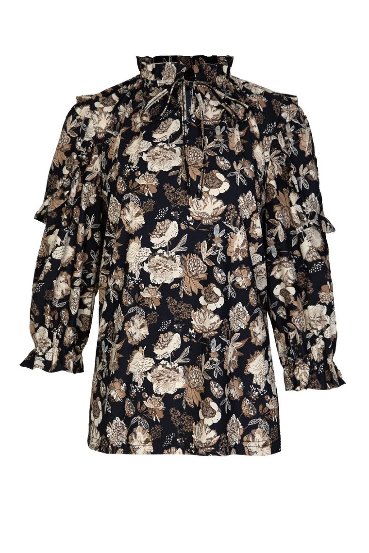 De Bente blouse is voorzien van een dessin dat het najaar vertaald als nooit te voren. Met een groen kleurenpalet verwerkt in een bloemenzee is jouw herfstlook ready to go. De top heeft een recht model met ruffles op de mouwtjes en een striksluiting in de hals. Deze blouse kun je tot complete set stylen met de bijpassende Elin broek.