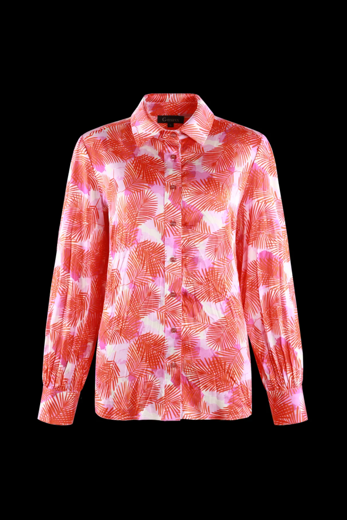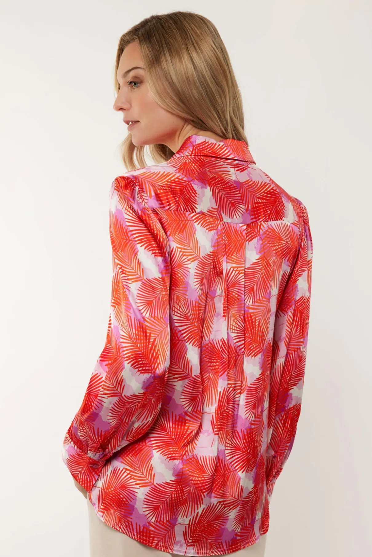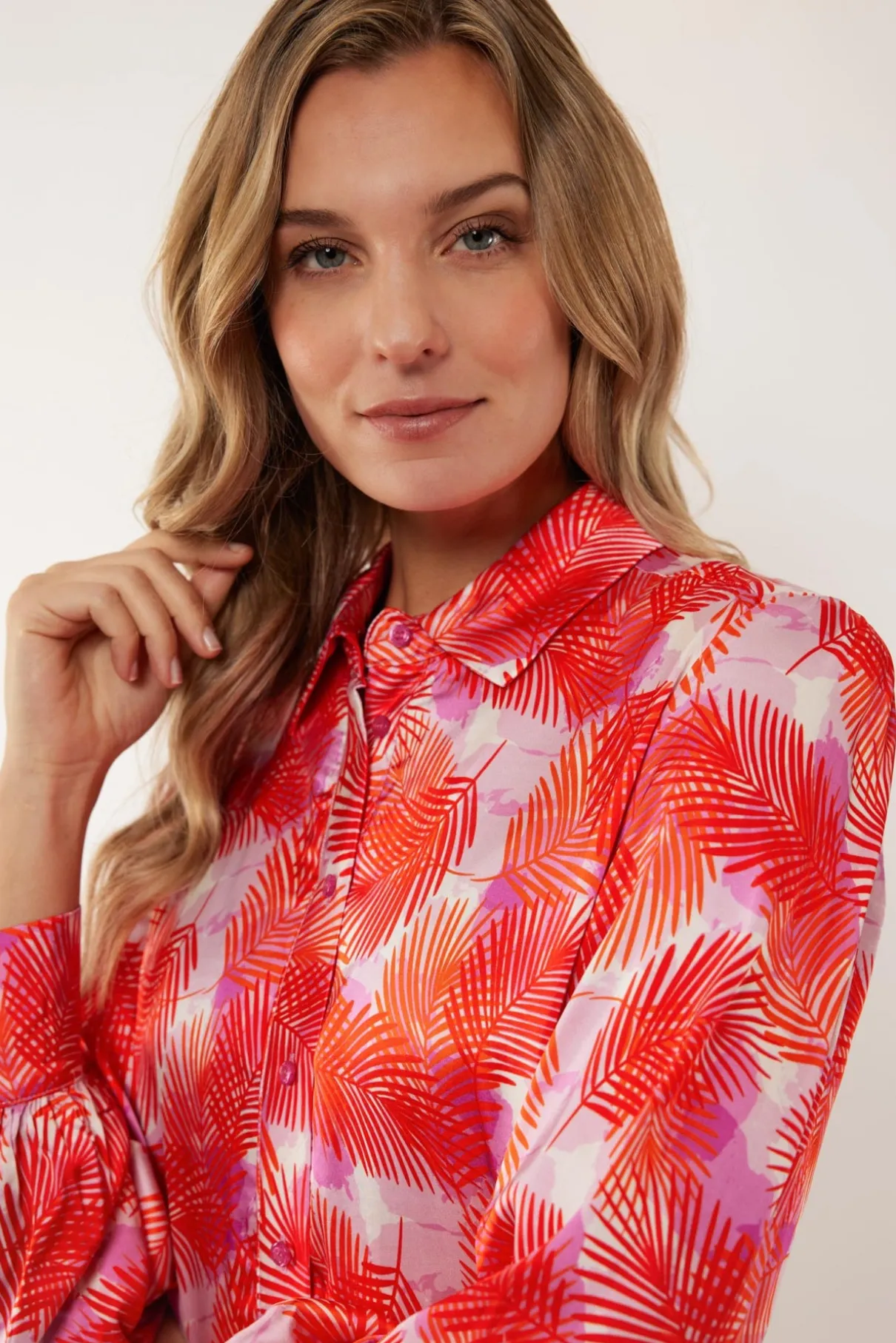 De Berrin blouse spreekt het voorjaar met haar kleurrijke dessin. De blouse is voorzien van een satijnenlook met een klassieke kraag en een knoopsluiting.