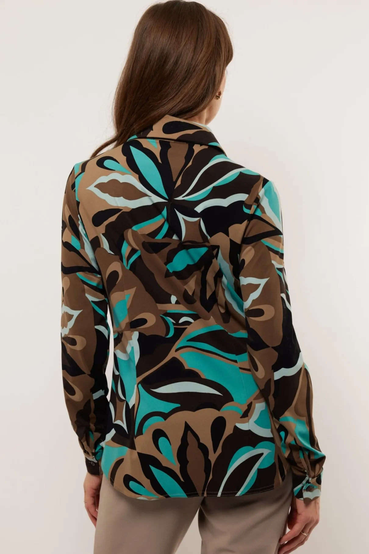 Maak dit seizoen een stylish statement met de grafische print van de Bette bouse. Deze blouse heeft een losvallend model met een klassieke kraag en een hoog draagcomfort door het gebruik van travelstof. Style deze blouse als set met deTias broek.