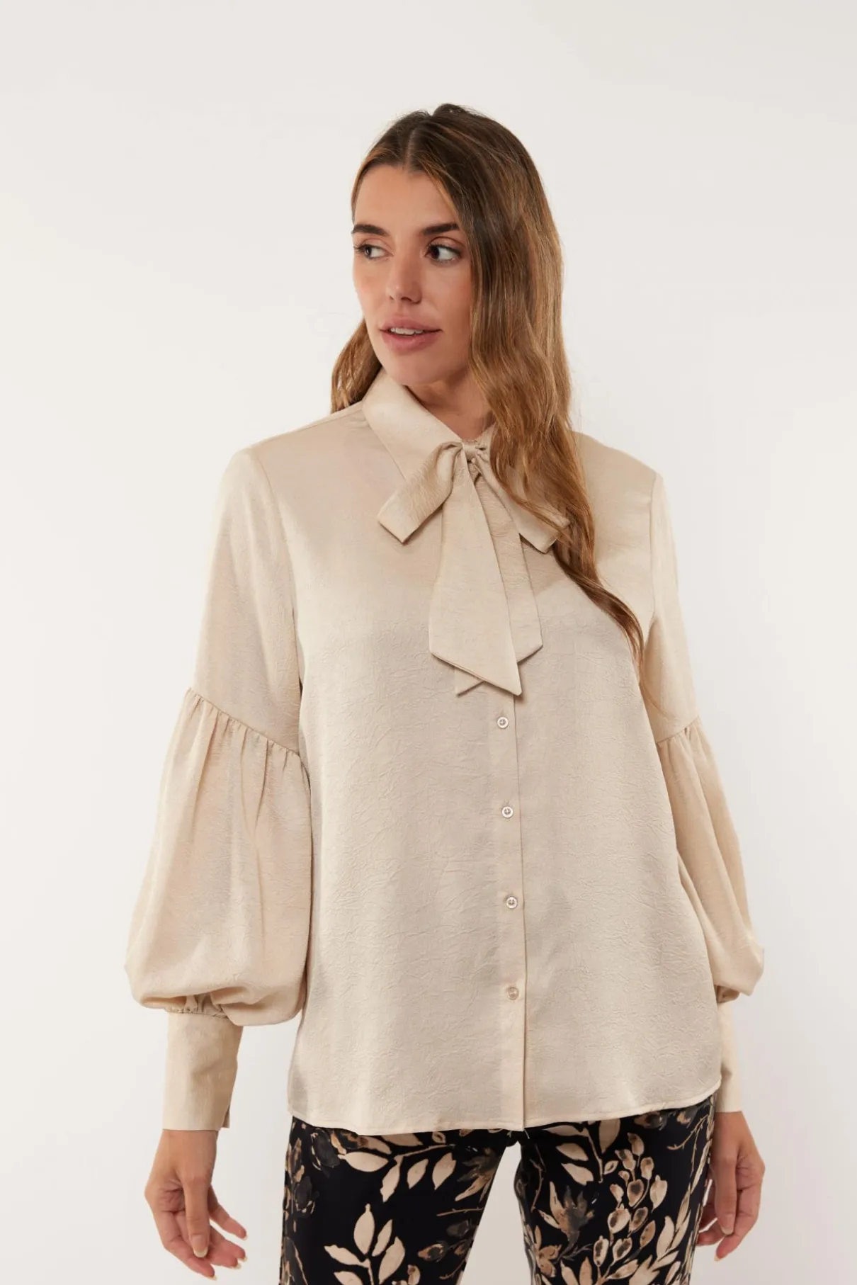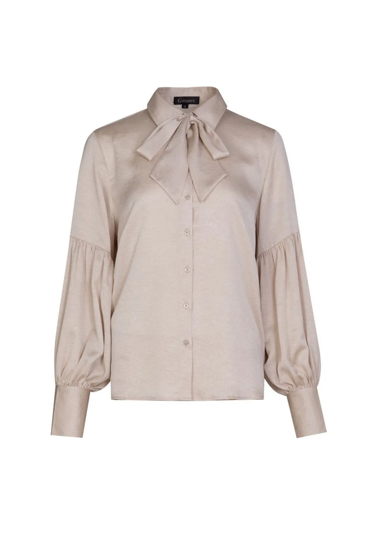 Vier de feestdagen met de chique Bridget blouse. Deze blouse heeft een losvallend model met een knoopsluiting, een klassieke kraag en een striksluiting in de hals. Ook heeft blouse ballonmouwen. De Bridget blouse is verkrijgbaar in het beige en donkerrood.