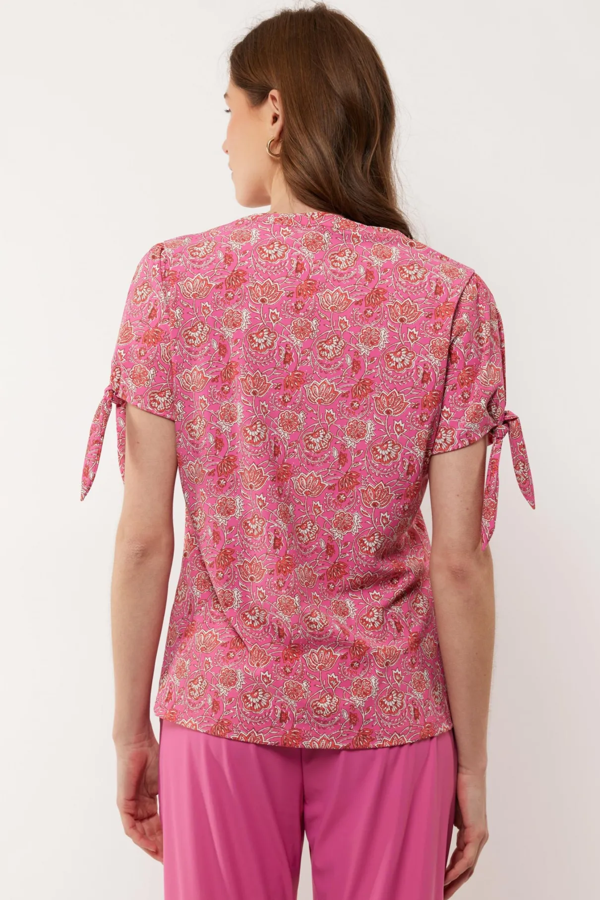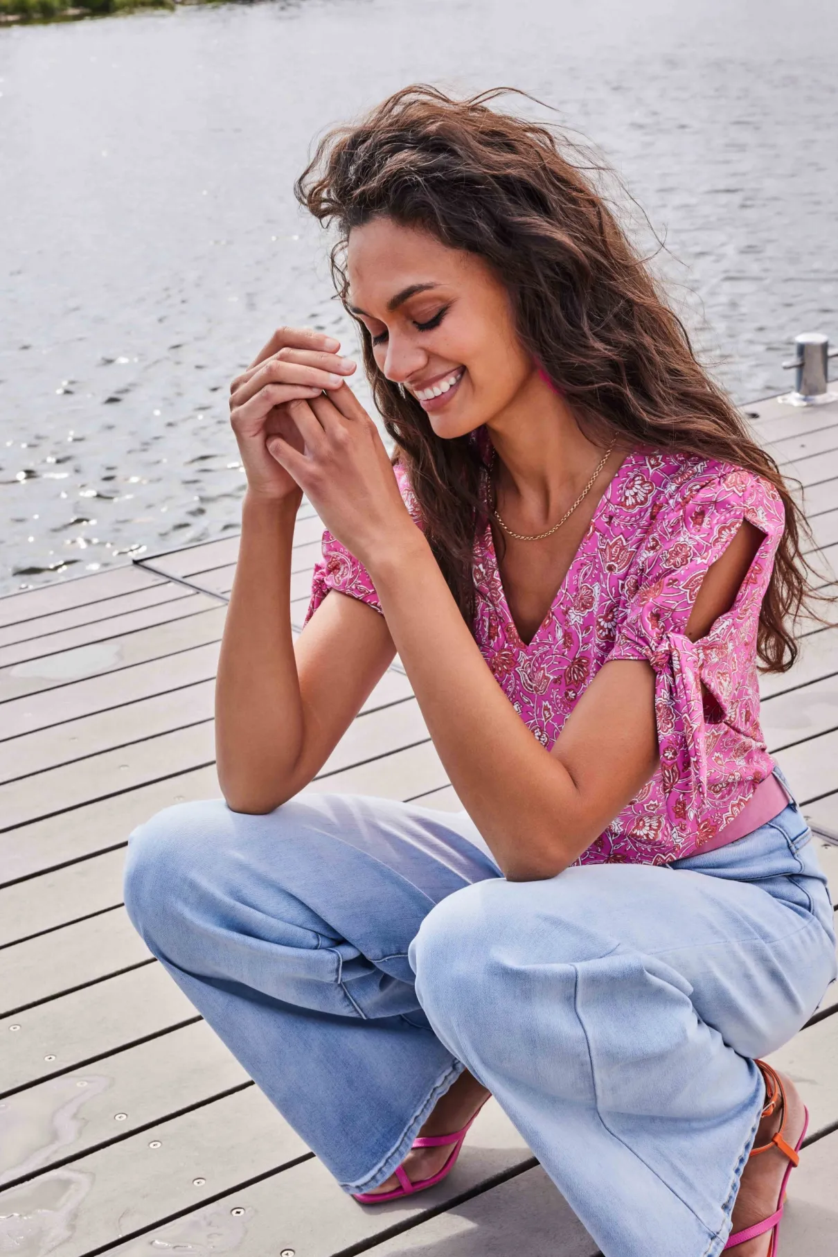 De Cailtyn top is een comfortabel zomer item, gemaakt van een hoogwaardige travel kwaliteit en is voorzien van een speelse bloemenprint. De strikken op de mouwen voegen een uniek en vrouwelijk accent toe dat je look verrijkt met een subtiele, maar opvallende flair.