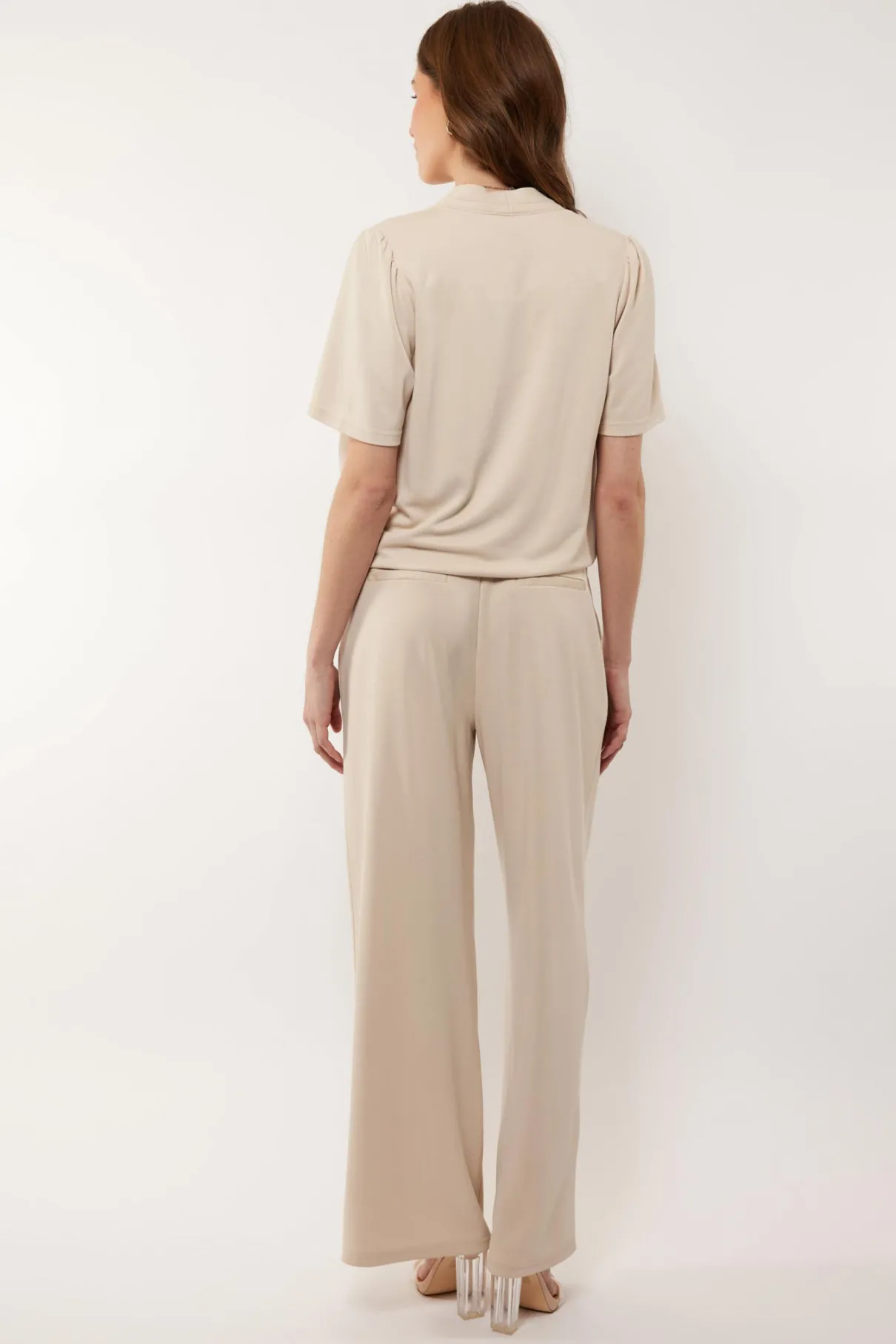 Met de Catie wide-leg broek maak je iedere look chic als comfortabel. Door de pasvorm lijk je optisch langer en geeft flair door de wijdlopende broekspijpen. De broek is voorzien van steekzakken en een elastieken tailleband.