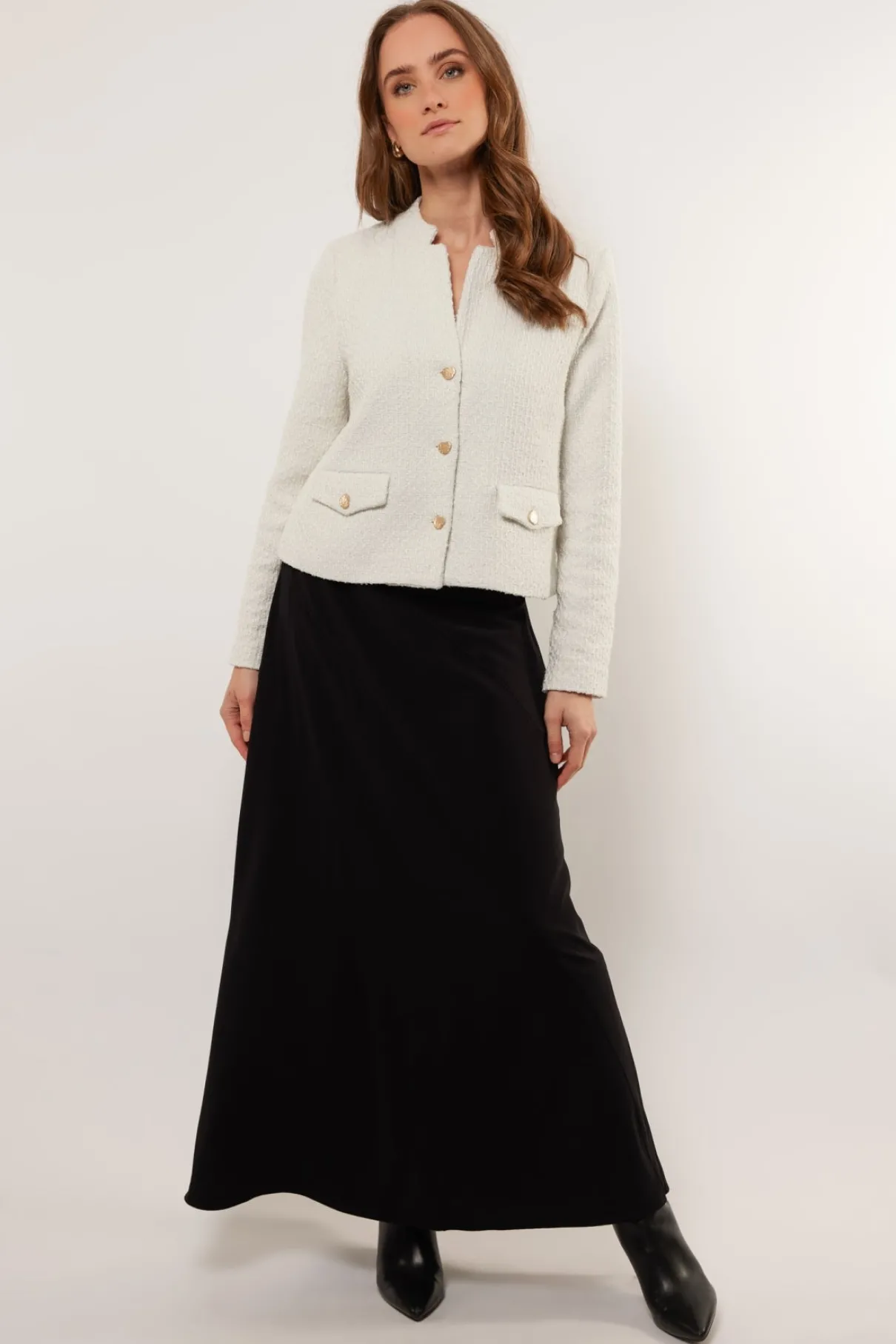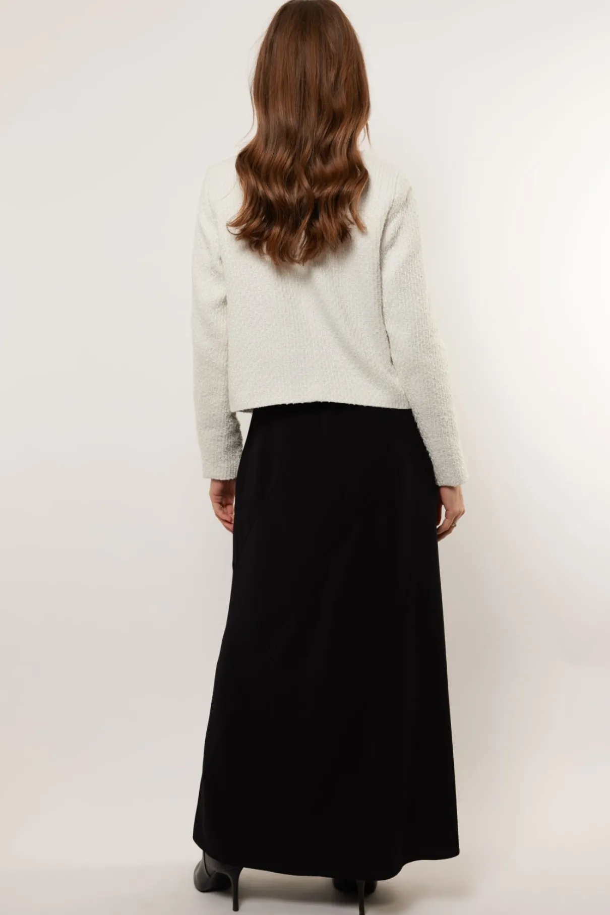 De Cilou rok straalt luxe en elegantie uit. Het vloeiende materiaal valt soepel en benadrukt een verfijnde uitstraling. Ideaal voor zowel een chique avondje uit als een stijlvolle daglook.