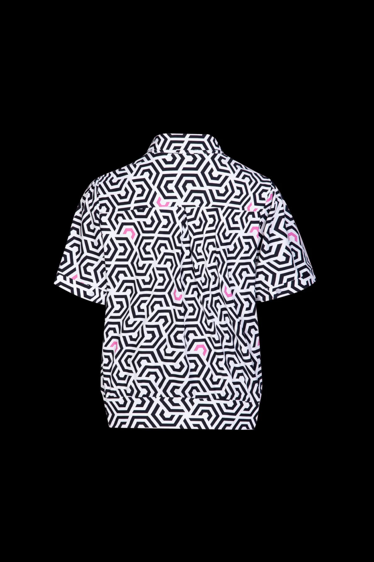 Maak dit seizoen een stylish statement met de grafische print van de Daan blouse. Deze blouse heeft een losvallend model met een klassieke kraag, een knoopsluiting en een hoog draagcomfort door het gebruik van travelstof. Style deze blouse als set met de Dafne broek.