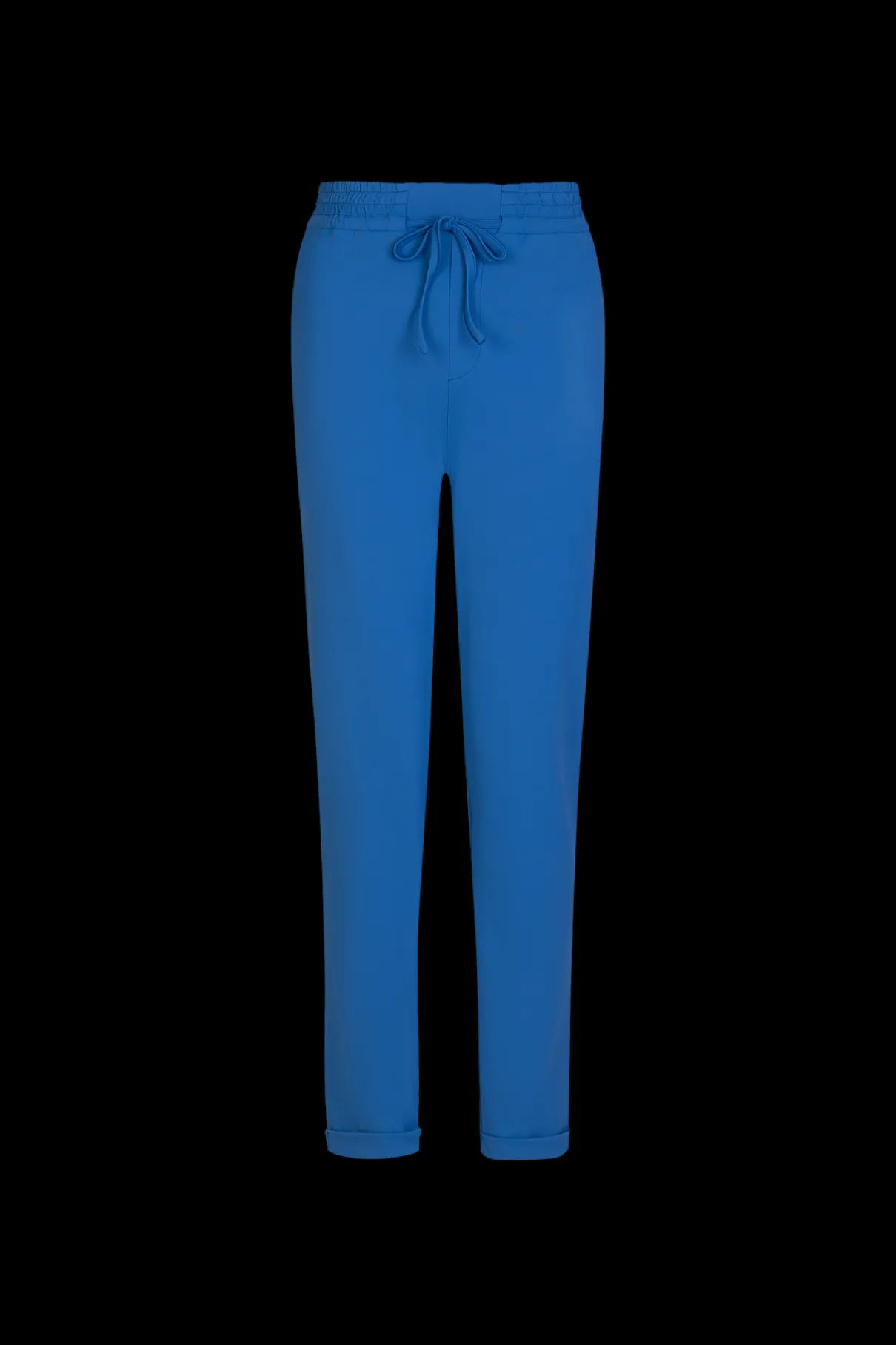 Ga deze zomer voor comfortabel chic met de Deci broek, gemaakt van yogastof. De broek heeft een easy-fit met steekzakken en een striksluiting in de elastieken tailleband.