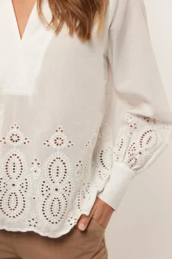 De Karter top heeft een strak design met opengewerkt kant en heeft een aansluitende pasvorm. Gemaakt van een lichte, ademende stof die ideaal is voor warme dagen. Combineer met een rok of broek voor een stijlvolle look.