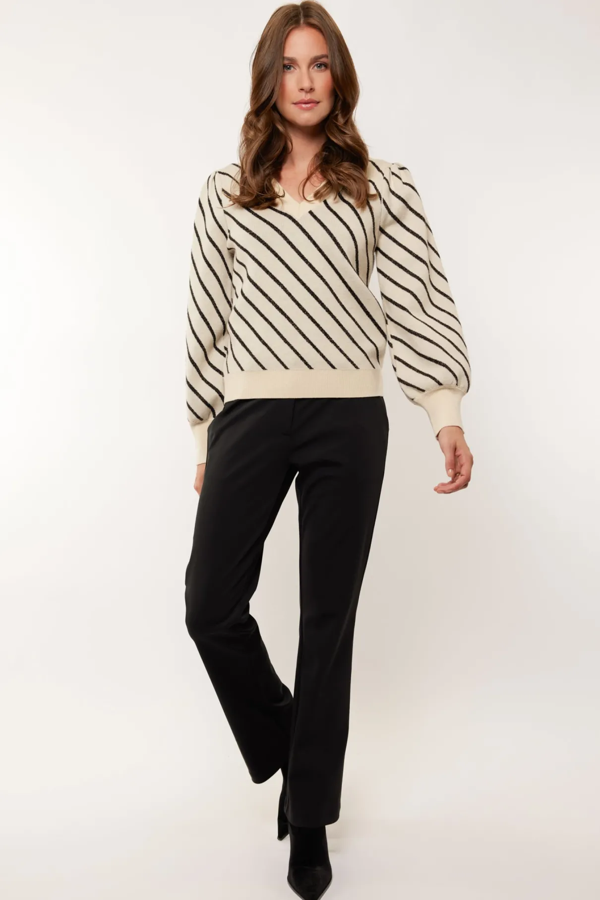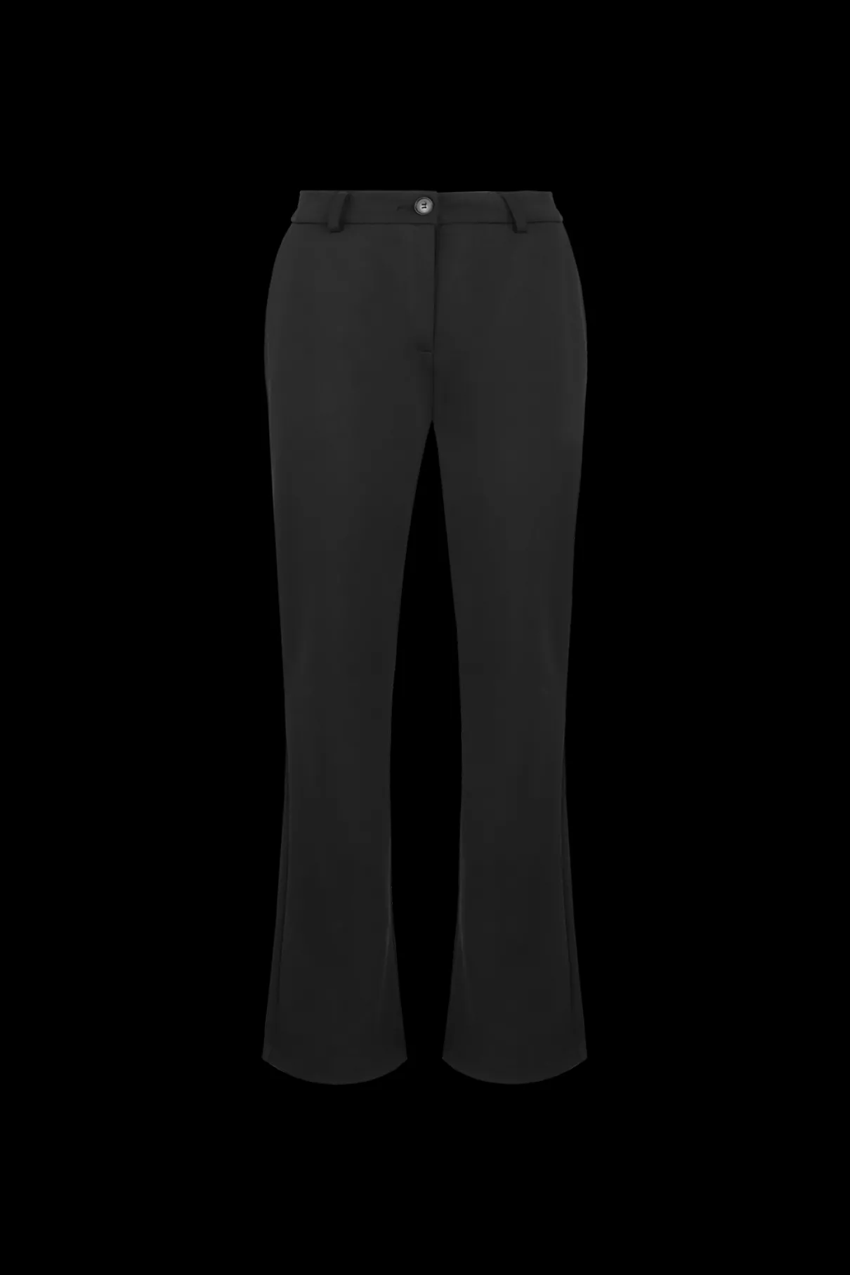 Ga voor sophisticated en comfort met de Laurena broek, gemaakt van yoga stof. Deze broek heeft een aansluitend model met wijdlopende broekpsijpen, een rits- en knoopsluiting en steekzakken.