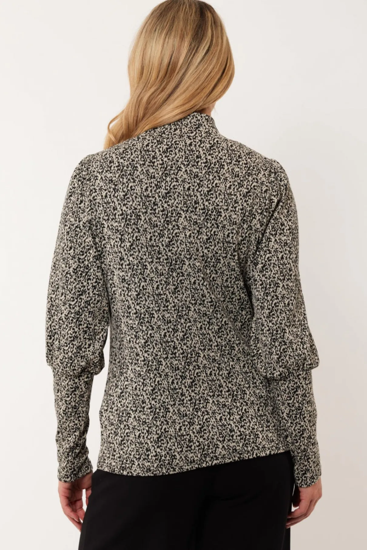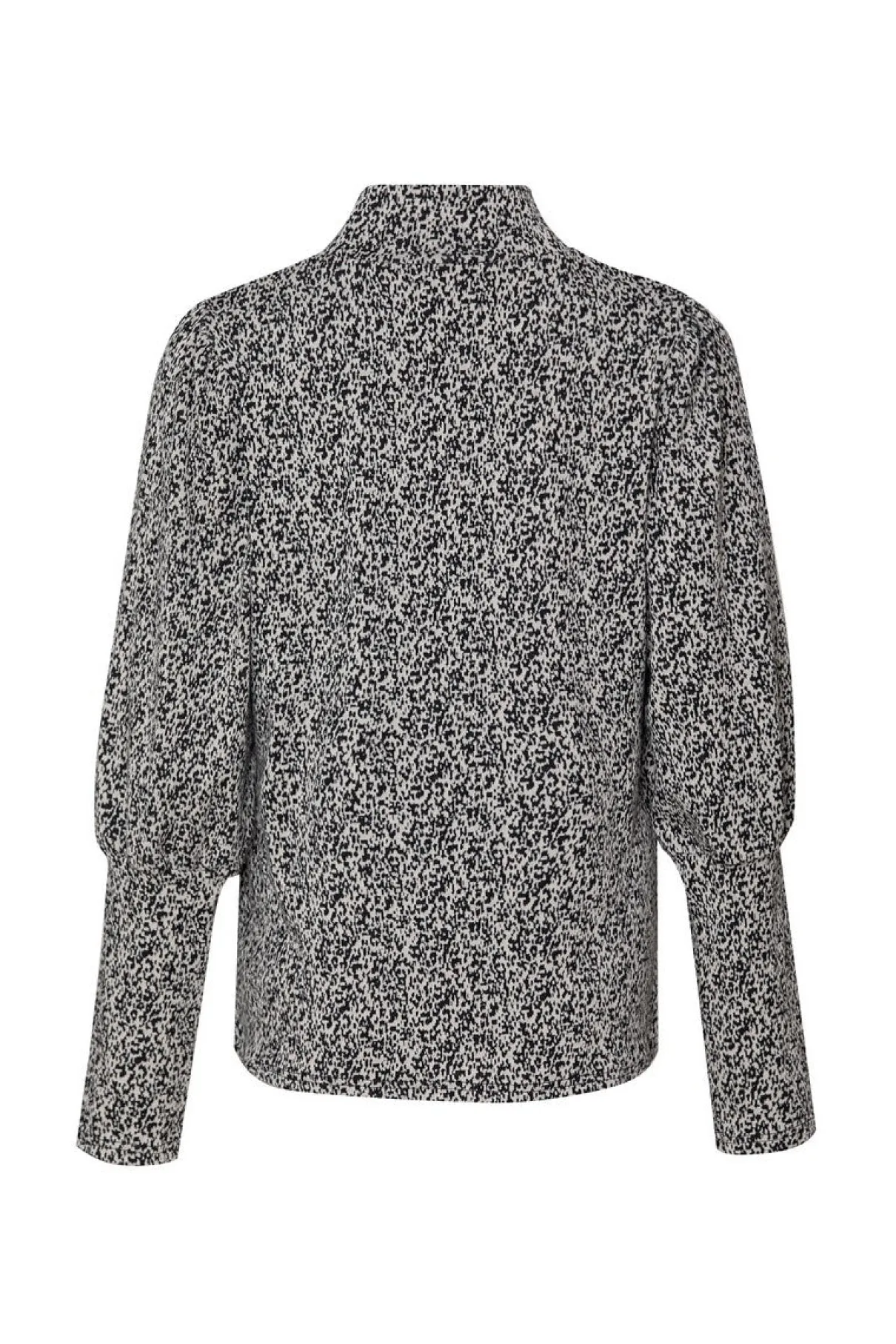 Zwart-witte prints zijn altijd goed. Zo ook het dessin van de Marinka top. Deze top heeft een recht model met een hooggesloten hals en ballonmouwen. Combineer deze top met de Marilyn broek voor een complete set.