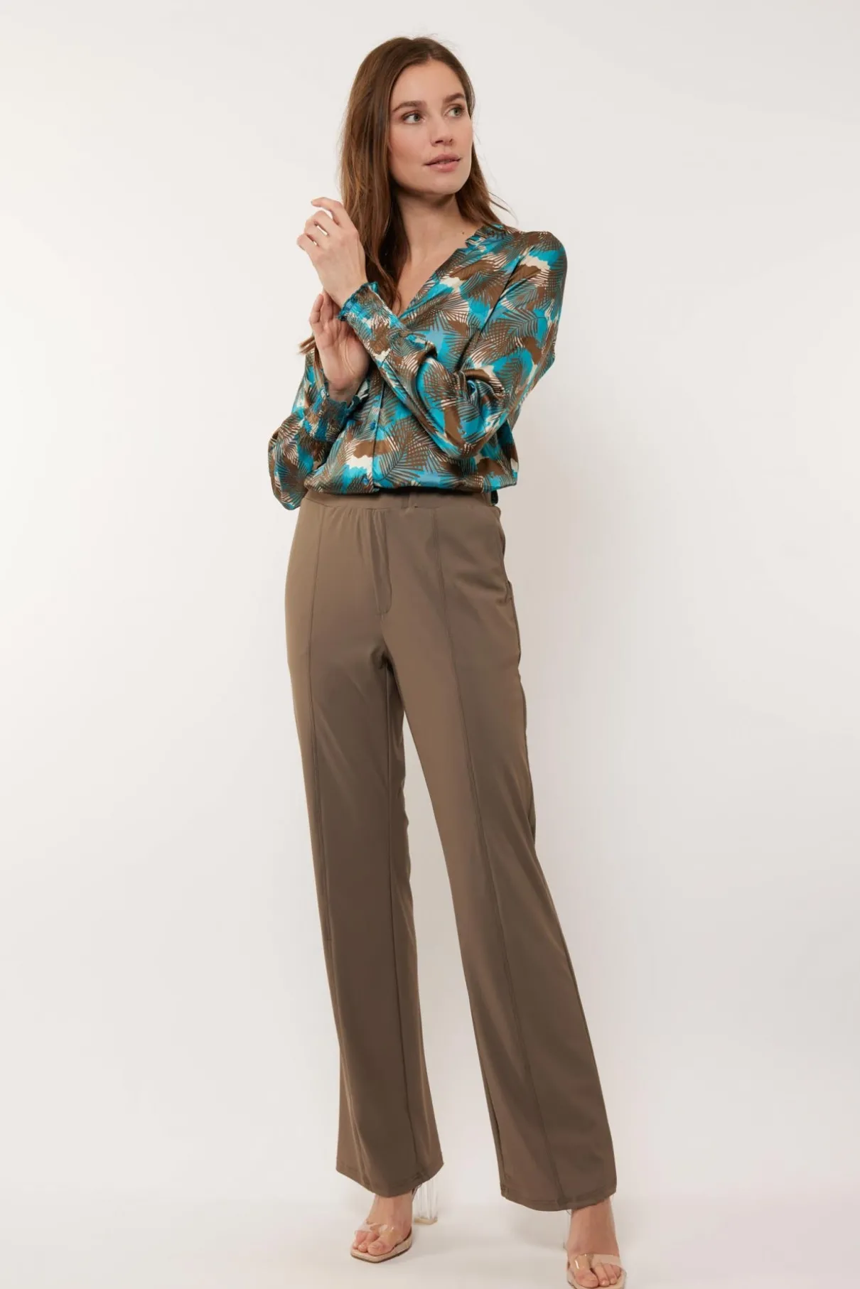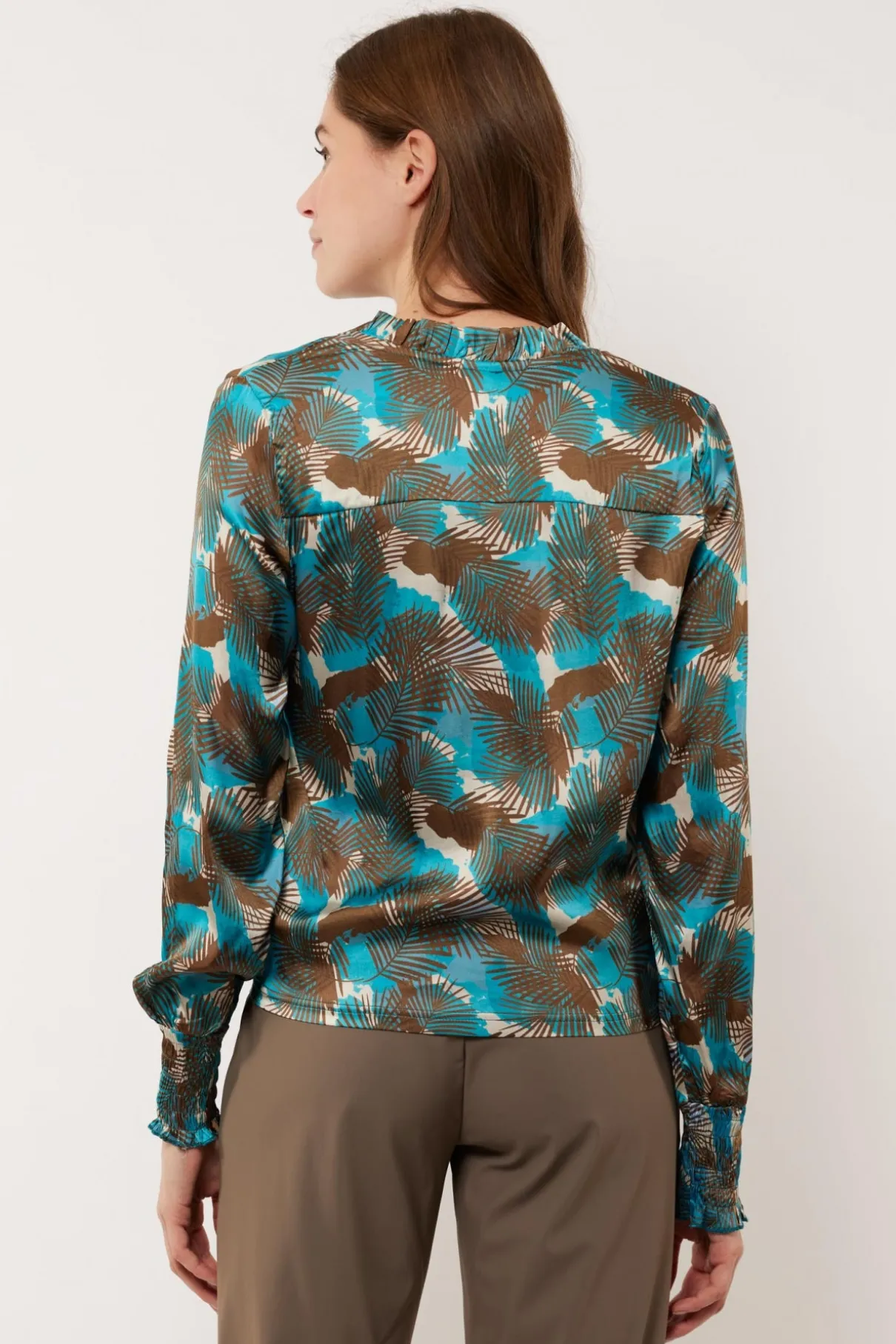 De Monica blouse spreekt het voorjaar met haar kleurrijke dessin. De blouse is voorzien van een satijnenlook met een knoopsluiting en een knoop aan de onderzijde.