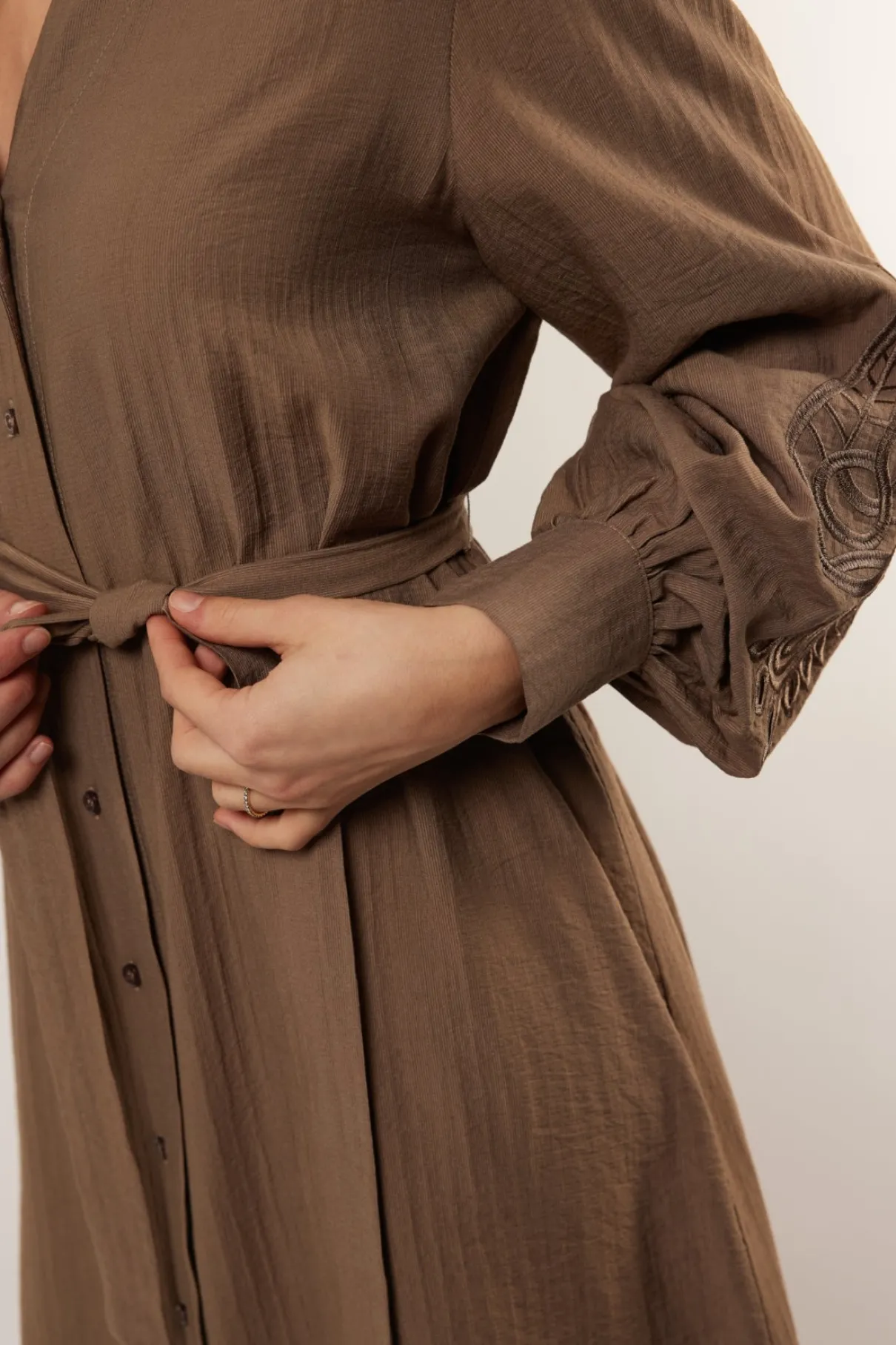 Ga dit voorjaar voor ultiem comfort in de Ulla jurk. Deze jurk is namelijk gemaakt van een luchtig en losvallend materiaal, met een mooie V-hals en borderie in op de mouwen. Daarnaast is de jurk voorzien van een knoopsluiting en een strikceintuur rond de taille.